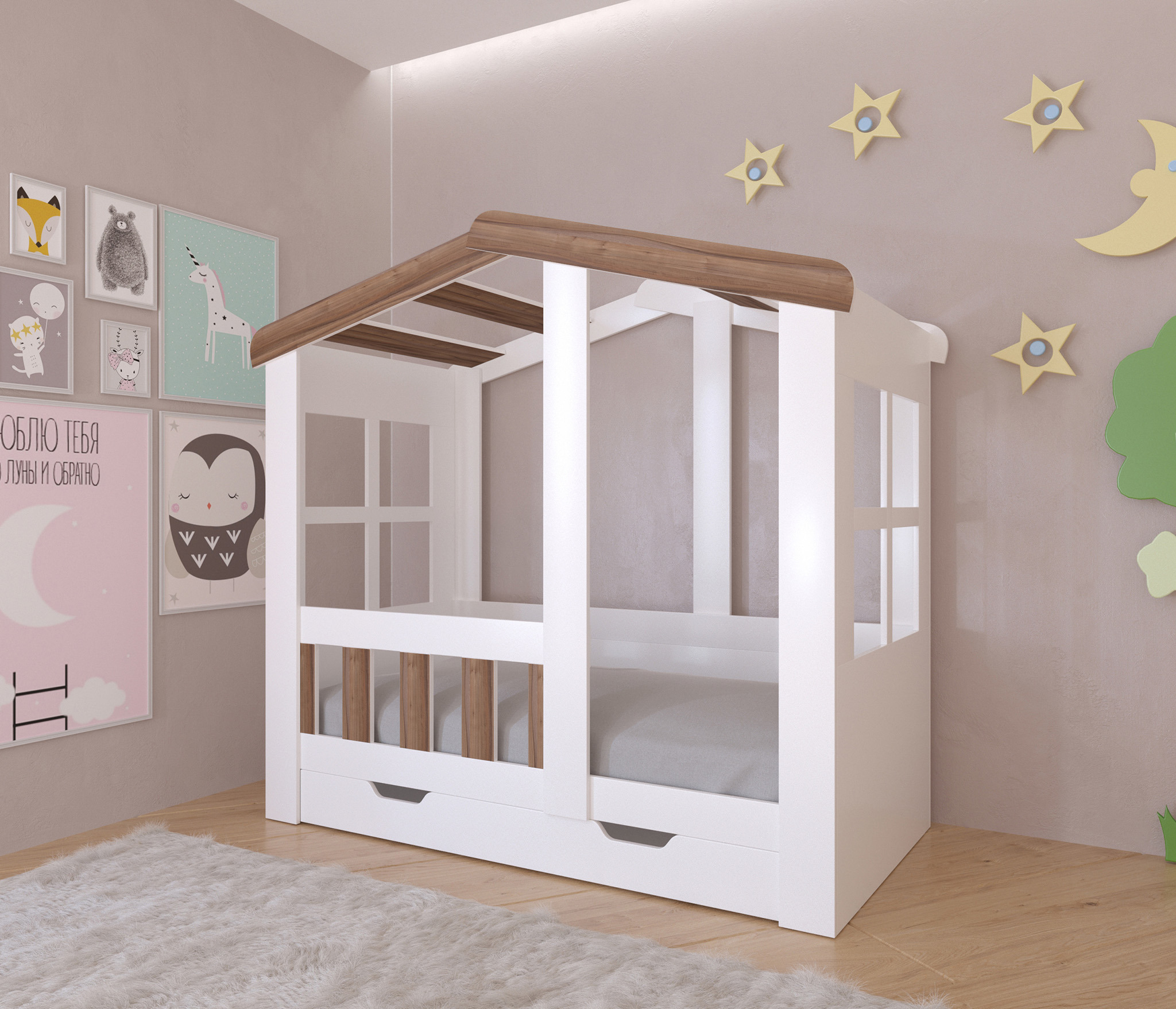 Кровать одноярусная Астра домик представляет собой стильно оформленную кровать для малышей. Форма кровати позволяет детишкам чувствовать себя уютно в своем собственном домике. Большое разнообразие цветовых сочетаний позволит вписать кровать в любой интерьер. Так же кровать обладает вместительным ящиком, способным вместить в себя спальное белье, вещи или детские игрушки.
