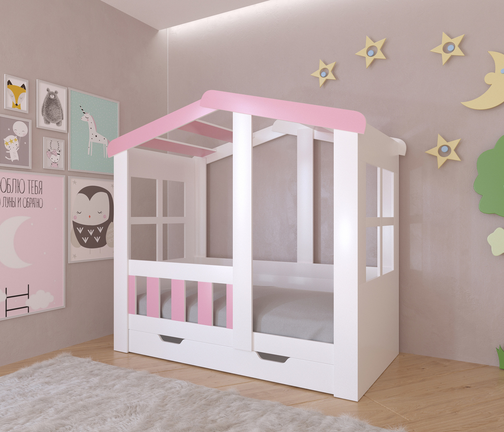 Отзывы о Столплит Кровать-чердак Астра домик с ящиком Розовый