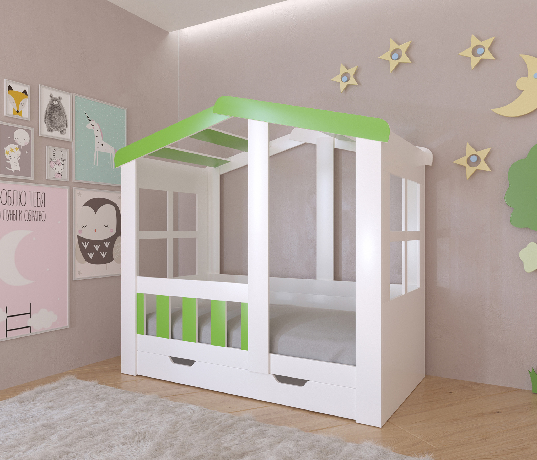 Отзывы о Столплит Кровать-чердак Астра домик с ящиком Салатовый