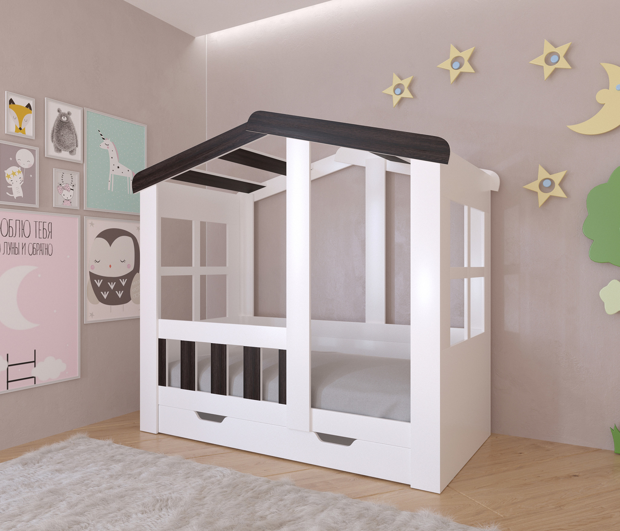 Отзывы о Столплит Кровать-чердак Астра домик с ящиком Венге