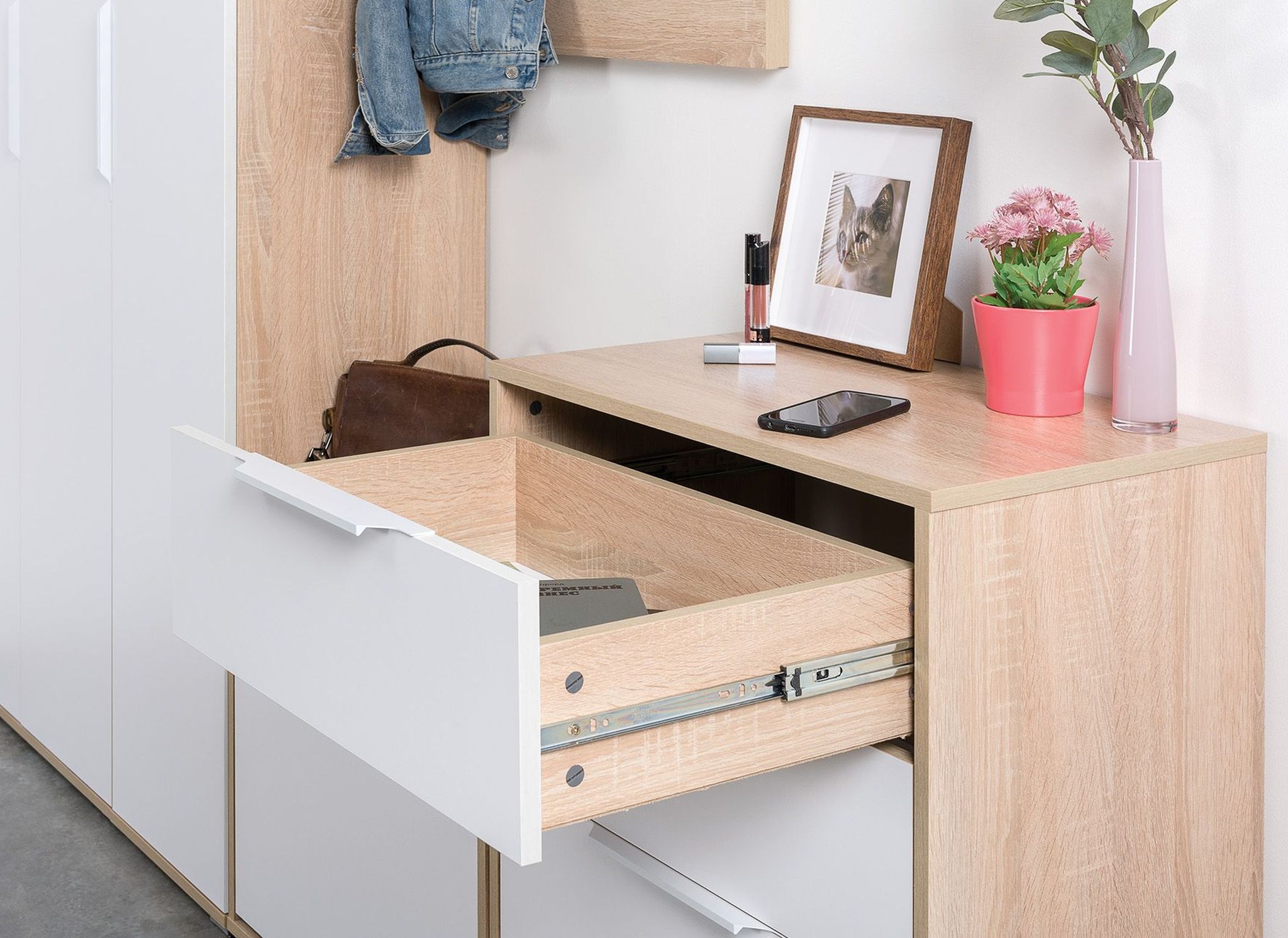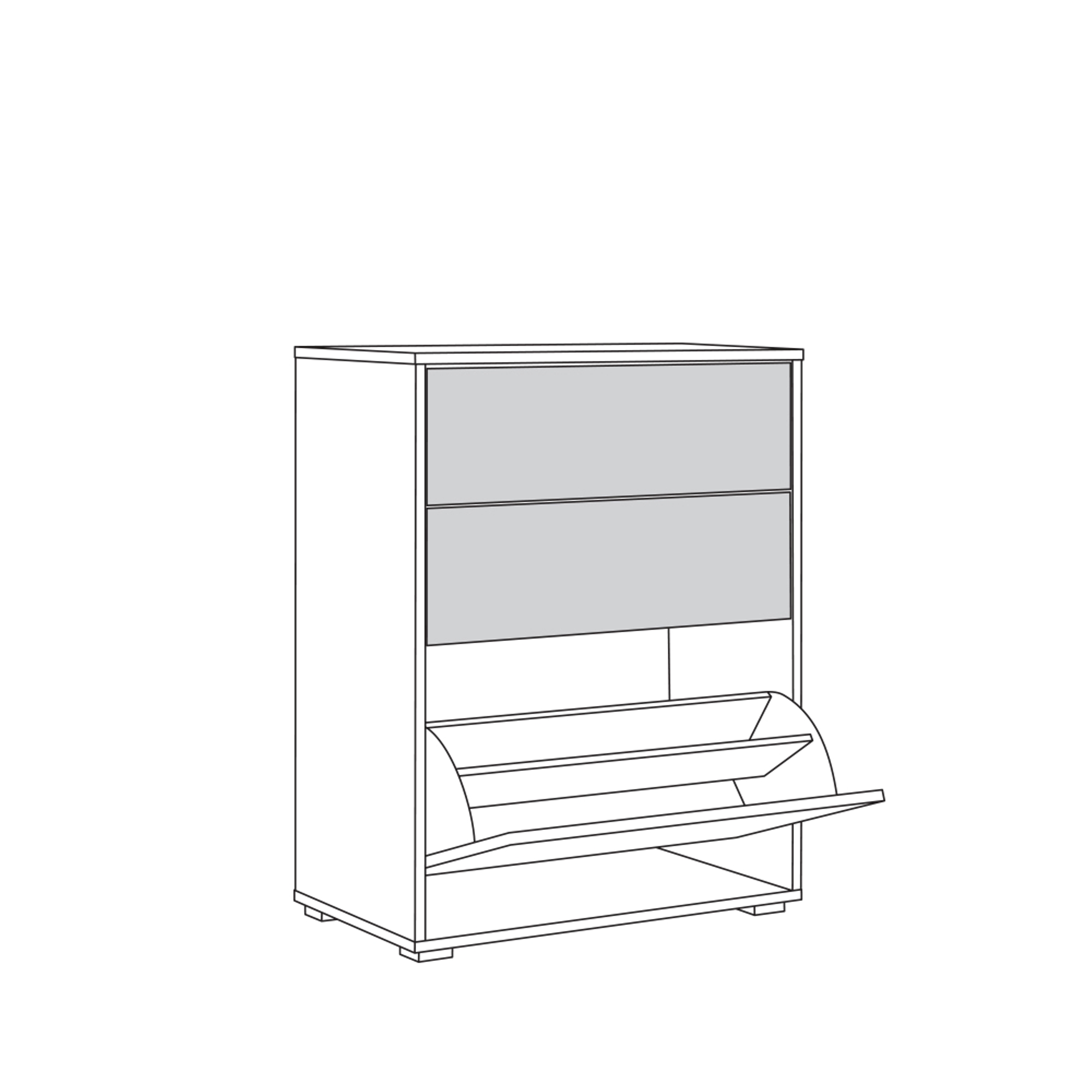 Конструкция с 2 выдвижными ящиками вверху и