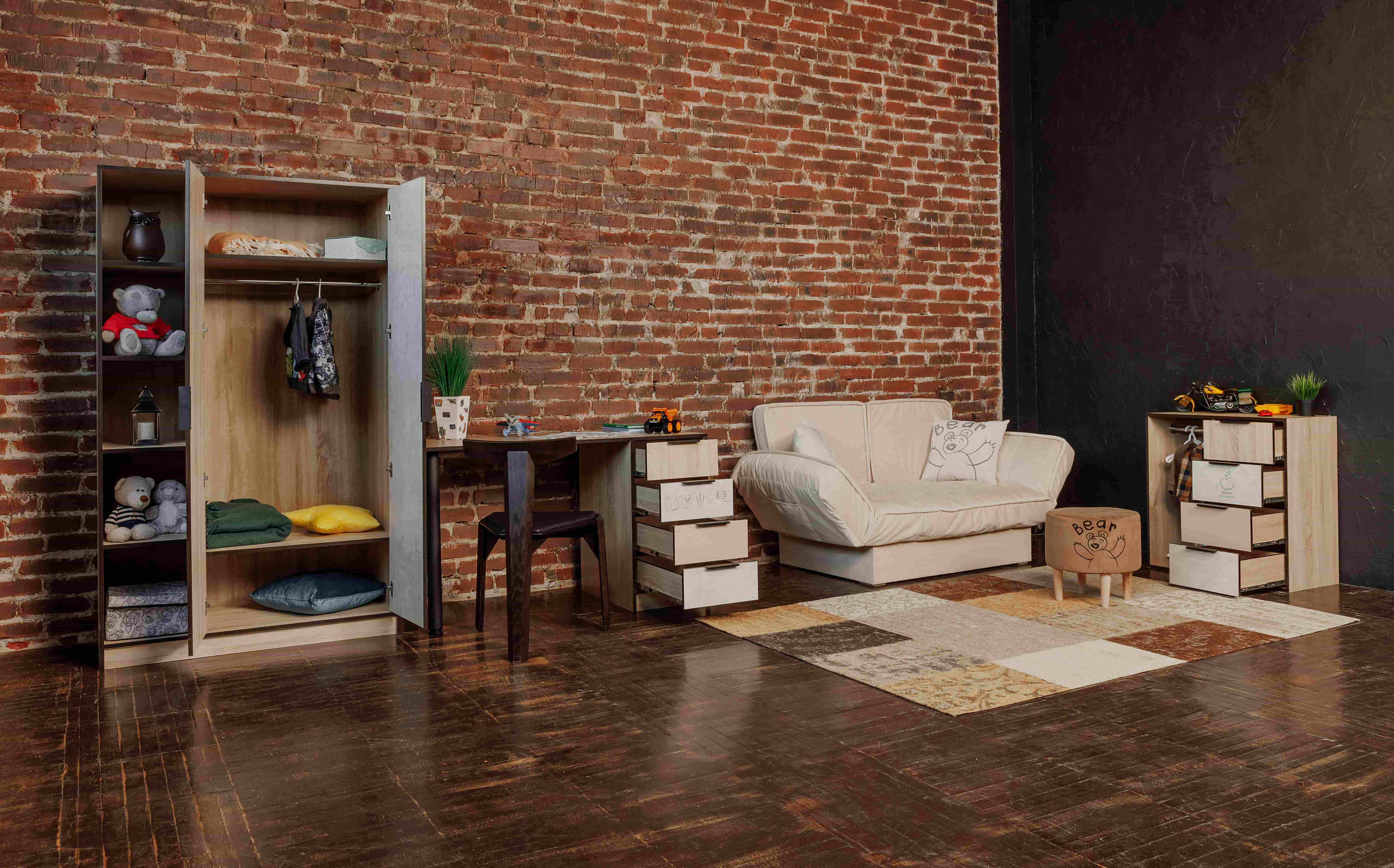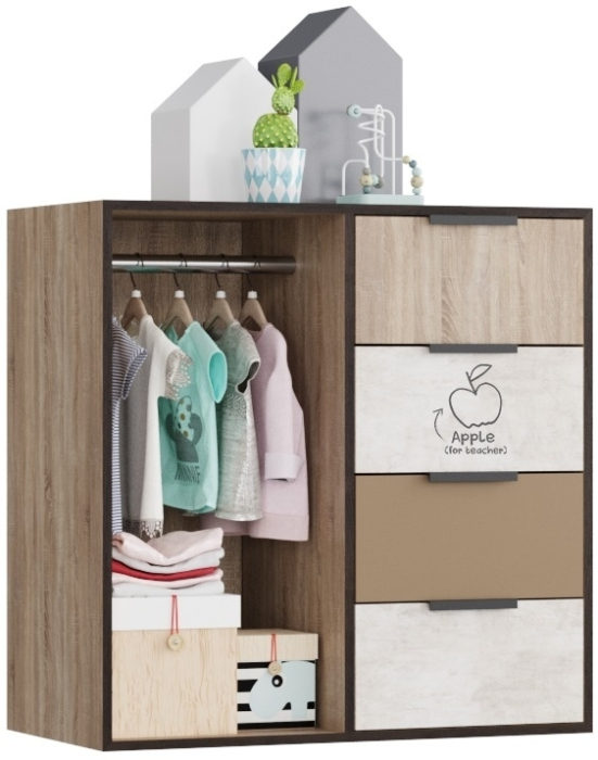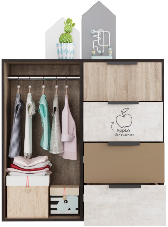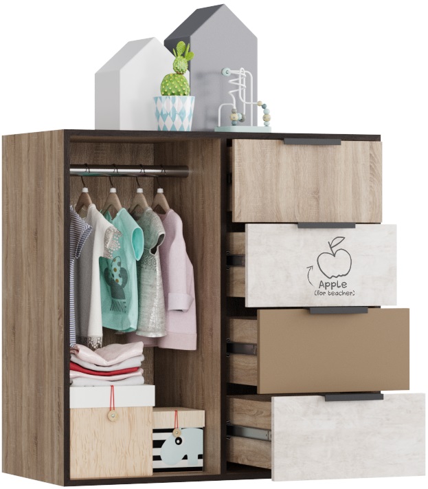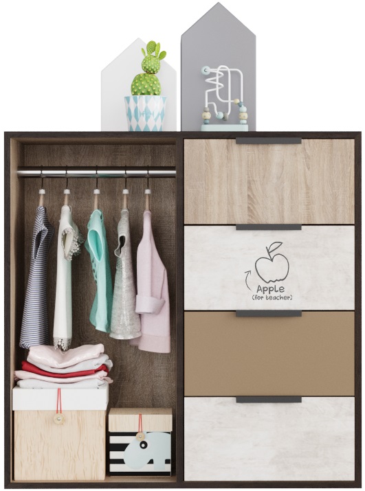 Брали этот комод, шкаф и кровать. Получился очень хороший комплект, много места не занимает, очень много вещей поместилось. Дети очень рады, просто замечательная коллекция.