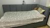 Кровать для ребенка 7 лет. Большая и отлично сделана. Обивка приятная. Взяли еще тумбочку. Смотрится комплектом. Спасибо магазину!
