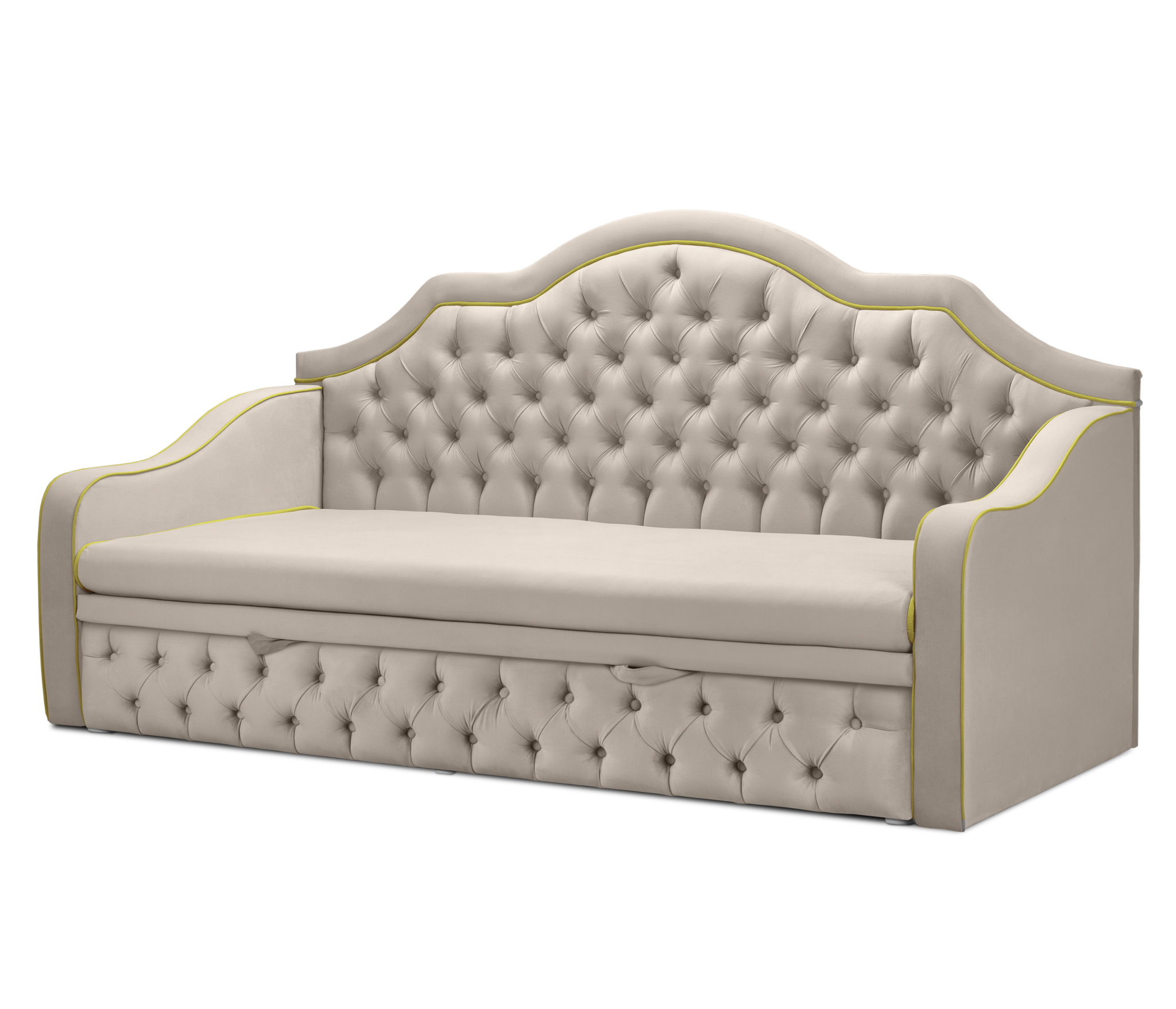 Софа Инфинити с дополнительным спальным местом - идеальный вариант для современной детской комнаты или спальни. Спинку с плавными линиями украшает качественная каретная стяжка ручной работы. Для создания особого шарма, применяются пуговицы, которые можно заменить на пуговицы-стразы. Софа Инфинити выполнена в антивандальной ткани,с отличными техническими характеристиками. Валики приобретаются отдельно.При заказе возможен выбор других оттенков.. Ящики укомплектованы направляющими для плавного открывания.