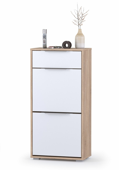 Тумба для обуви высокая Куба, компактная и многофункциональная, интересна индивидуально и в композициях. Стильная тумба для обуви высокая Куба оборудована выдвижным ящиком для мелочей и двумя нишами для обуви за откидными фасадами. Откидные двери тумбы для обуви высокой Куба снабжены механизмом со специальными полками для размещения обуви. Удобная высота обувницы, 102 см., позволит использовании её в качестве подставки для сумок или подзеркальника. Тумба для обуви высокая Куба - элемент из набора мебели для прихожих Куба.