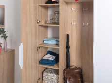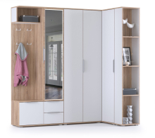 Прихожая Куба № 12 создаст комфортный, функциональный и безопасный интерьер, украсит уникальной эстетикой белоснежных фасадов. Угловая конструкция прихожей Куба 12 позволяет, используя труднодоступные места помещения, создать вместительную систему хранения. Комплектация угловой прихожей Куба № 12 включает шкаф комбинированный, шкаф угловой, двустворчатый шкаф и открытый стеллаж. Такая разноплановость элементов прихожей Куба № 12, позволяет бережно относится к своему гардеробу и содержать дом в порядке. Многофункциональный шкаф Куба 10.14 удобно комбинирует открытую вешалку и одностворчатый шкаф с двумя выдвижными ящиками. Распашная дверь одностворчатого шкафа декорирована зеркалом во всю её длину, внутри шкаф оборудован тремя съёмными полками. Большое зеркало шкафа - непременный элемент прихожей, помогающий Вам выглядеть идеально и освежающий интерьер. Открытая вешалка, с четырьмя крючками для одежды, имеет антресольную полку для головных уборов и распашное отделение для обуви. Оба шкафа угловой прихожей Куба 12 оборудованы штангами для вешалок с одеждой - двустворчатый выдвижной, угловой - горизонтальной. Верхнюю одежду можно проветрить и просушить на открытой вешалке, после чего убрать в один из шкафов прихожей - для сохранения формы. Дополнительно в шкафах предусмотрены полки, выделяющие отдельные ниши для вещей, обуви, головных уборов и аксессуаров. Открытый стеллаж Куба 13.141 с тремя полочками внесёт визуальную лёгкость в оформление прихожей, добавит комфорт и стиль. Универсальная сборка набора мебели угловой прихожей Куба 12 позволит составить максимально эргономичный гарнитур. Дизайнеры прихожей Куба, объединив эстетику и передовую технологию, создали элегантный гарнитур в современной стилистике. Пастель и древесная фактура корпусов прихожей Куба согревают природной теплотой визуальную прохладу белоснежных фасадов мебели. Актуальный тренд - минимальное декорирование мебели позволяет сформировать лаконичные, интересные ансамбли для любых помещений. Незамысловатые формы и абсолютная эргономичность прихожей Куба делают благородную элегантность интерьеров по-домашнему уютной. Корпуса и фасады мебели Куба выполнены из ламинированной ДСП 16 мм. Опоры - серый пластик, лицевая фурнитура - металл, цвет белый. Современная фурнитура, использованная в производстве угловой прихожей Куба 12, отличается высокой надёжностью и долговечностью. Распашные двери модулей прихожей Куб №12 на четырёхшарнирных петлях, выдвижные ящики на шариковых направляющих полного выдвижения. Угловая прихожая с зеркалом Куба № 12 поставляется в разобранном виде, с комплектом фурнитуры, упакованная в 4-х слойный гофрокартон. Соответствие ГОСТам и требованиям Таможенного Союза прихожей Куба № 12 и материалов их производства подтверждено сертификатами.