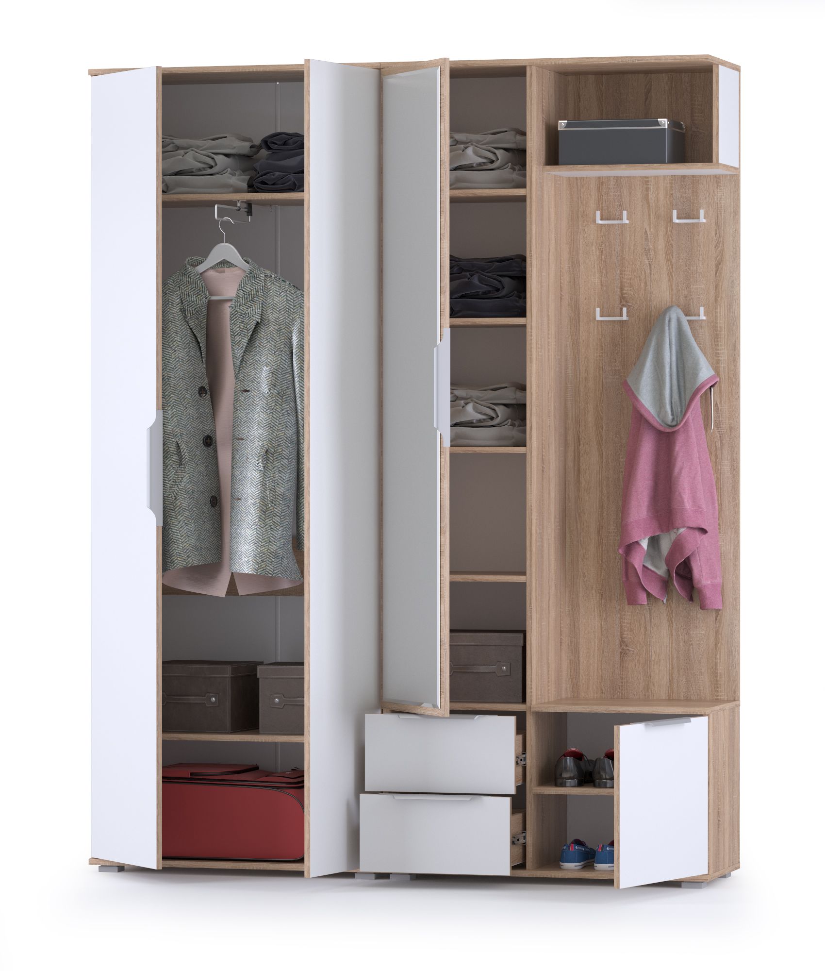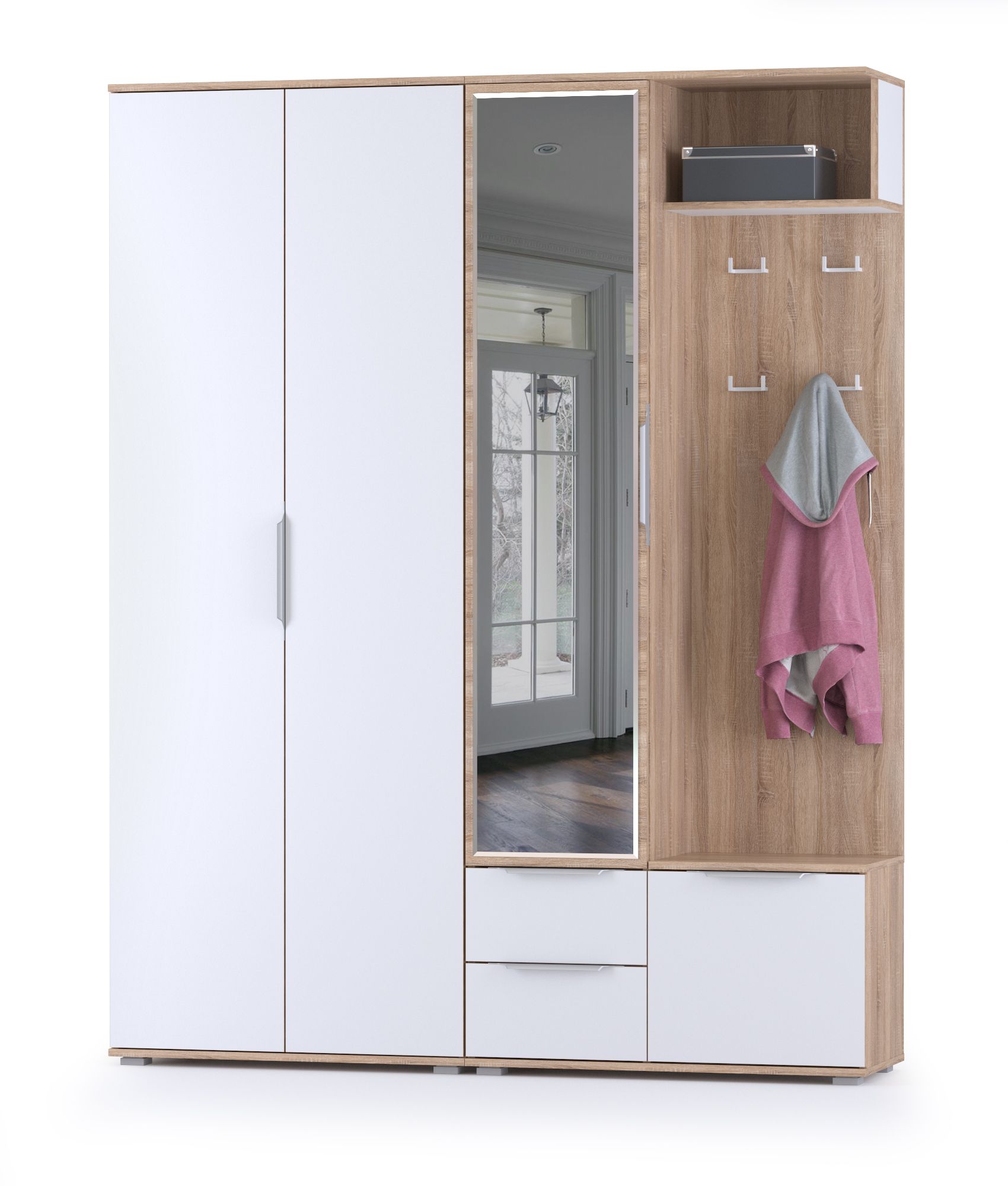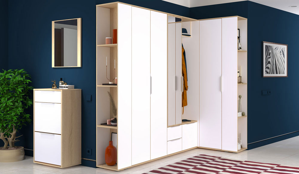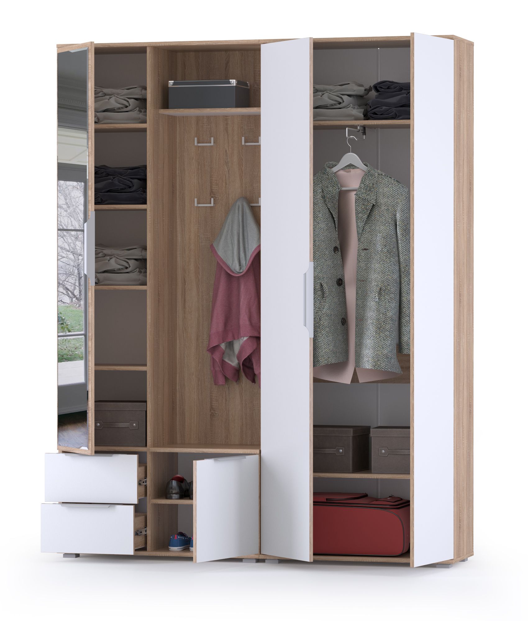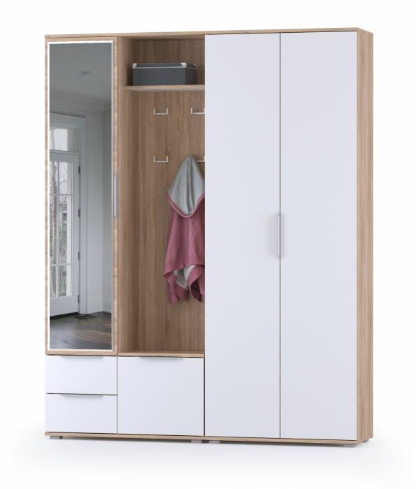 Прихожая с зеркалом Куба НМ № 13 - обладательница всегда ценных достоинств - практичности, удобства и красоты! Данная комплектация гарнитура Куба будет интересна семье с детками для обустройства небольшой прихожей или дачи. Прихожая Куба № 13 способна, буквально на нескольких квадратных метрах, создать комфортный, функциональный и безопасный интерьер. Шкаф комбинированный 10.14 с открытым стеллажом Куба Многофункциональный шкаф Куба 10.14 удобно комбинирует открытую вешалку и одностворчатый шкаф с двумя выдвижными щиками. Распашная дверь одностворчатого шкафа декорирована зеркалом во всю её длину, внутри шкаф оборудован тремя съёмными полками. Открытая вешалка, с четырьмя крючками для одежды, имеет антресольную полку для головных уборов и распашное отделение для обуви. Двустворчатый, распашной шкаф для одежды Куба 13.136 с выдвижной штангой - аккуратно разместит сезонную одежду на вешалках. Дополнительно шкаф для одежды Куба 13.136 оборудован двумя полками, выделяющими отдельные ниши для обуви и головных уборов. Универсальная сборка набора мебели прихожей Куба № 13 позволит составить максимально эргономичный гарнитур. Дизайнеры прихожей Куба, объединив эстетику и передовую технологию, создали элегантный гарнитур в современной стилистике. Пастель и древесная фактура корпусов прихожей Куба согревают природной теплотой визуальную прохладу белоснежных фасадов мебели. Актуальный тренд - минимальное декорирование мебели позволяет сформировать лаконичные, интересные ансамбли для любых помещений. Незамысловатые формы и абсолютная эргономичность прихожей Куба делают благородную элегантность интерьеров по-домашнему уютной. Корпуса и фасады мебели Куба выполнены из ламинированной ДСП 16 мм. Опоры - серый пластик, лицевая фурнитура - металл, цвет белый. Современная фурнитура, использованная в производстве прихожей Куба № 13, отличается высокой надёжностью и долговечностью. Распашные двери модулей прихожей Куба на четырёхшарнирных петлях, выдвижные ящики на шариковых направляющих полного выдвижения. Прихожая Куба № 13 поставляется в разобранном виде, с комплектом фурнитуры, упакованная в 4-х слойный гофрокартон. Соответствие ГОСТам и требованиям Таможенного Союза прихожей Куба №13 и материалов их производства подтверждено сертификатами.