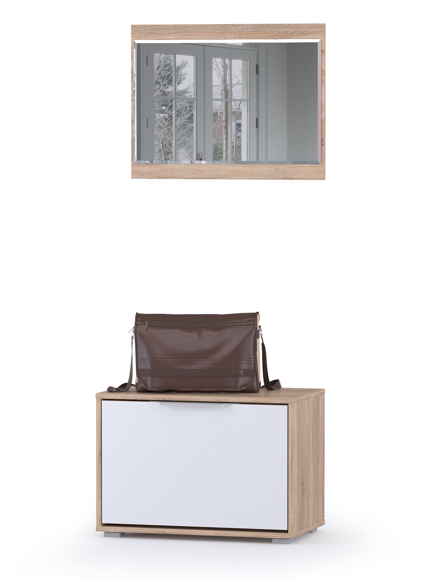 Обувница с зеркалом Куба НМ № 2 - функциональный набор мебели для больших и малых прихожих. Компактная обувница Куба Комод 13.58 с откидным фасадом обеспечит хранения и лёгкий доступ к сезонной обуви. Откидная дверь обувницы Куба снабжена механизмом со специальными полками для размещения обуви. Удобная обувница может быть использована в качестве подзеркальника, подставки для сумок и банкетки для переобувания. Зеркало навесное Куба - уникальный элемент прихожих, помогающий Вам всегда выглядеть идеально. Прямоугольная форма зеркала позволяет повесить его как горизонтально, так и вертикально, согласно Вашему дизайн-проекту. Обувница 13.58 с зеркалом Куба - элементы из набора мебели для прихожих Куба.