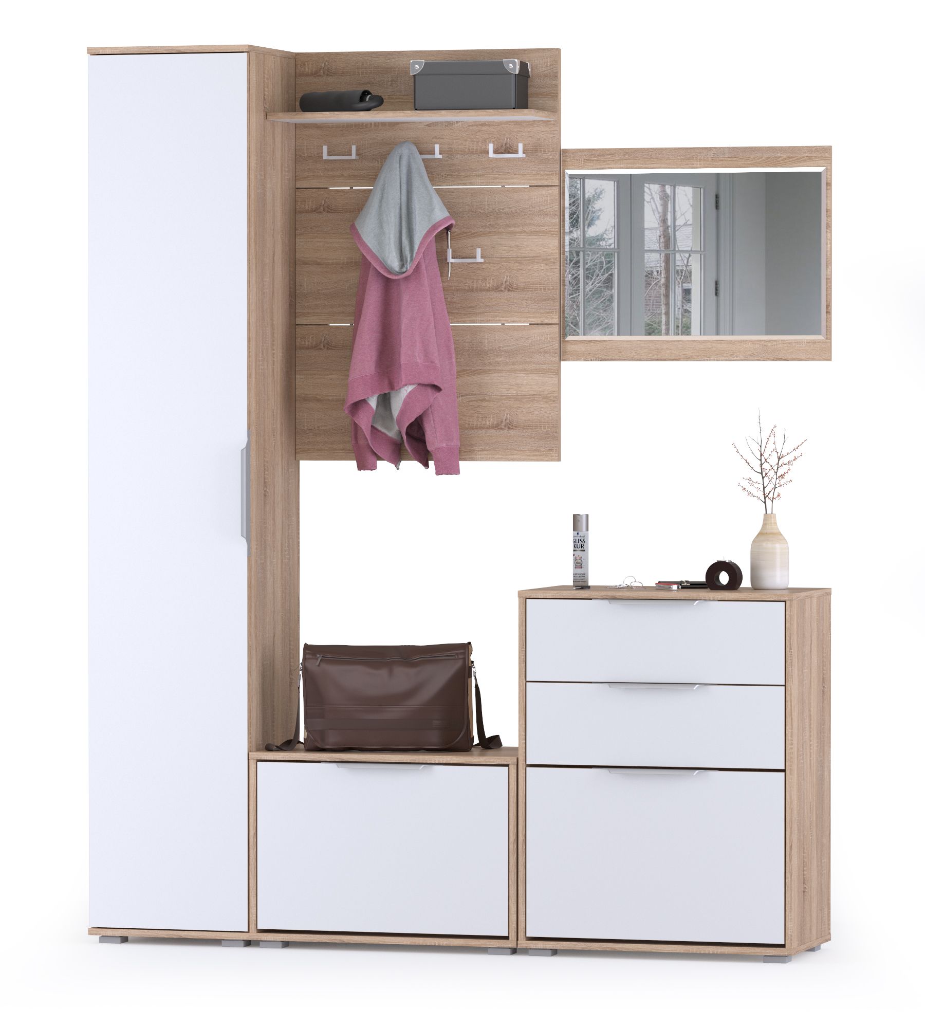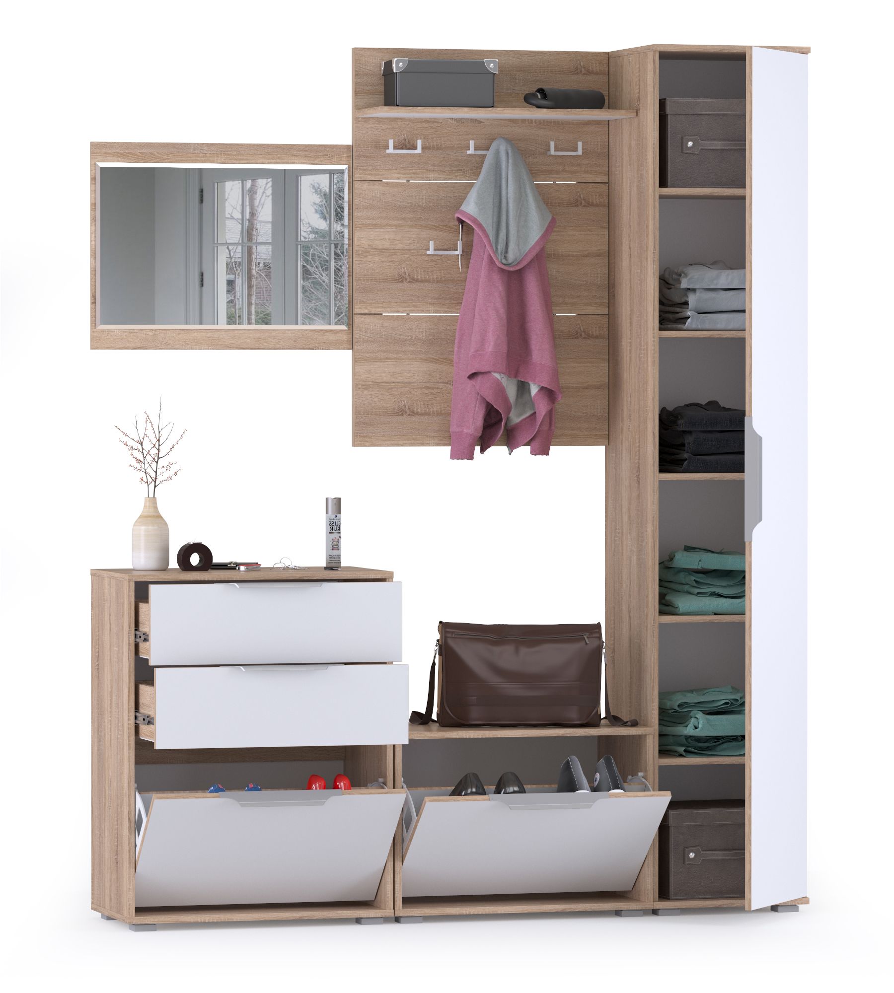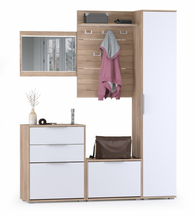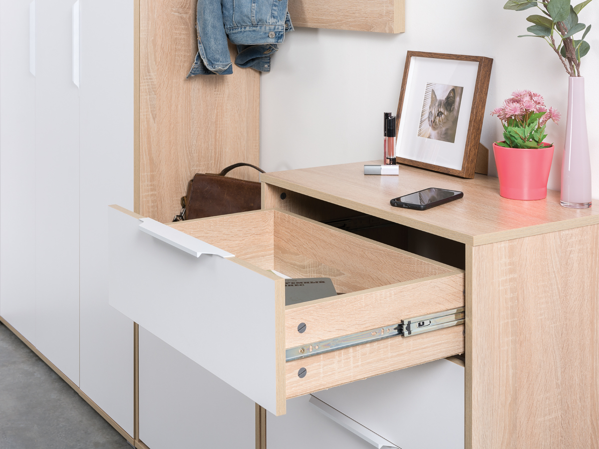 Куба Прихожая № 20 - обладательница всегда ценных достоинств - практичности, удобства и красоты! Данная комплектация гарнитура Куба будет интересна семье с детками для обустройства домашней прихожей или дачи. Куба Прихожая № 20 способна, буквально на нескольких квадратных метрах, создать комфортный и функциональный интерьер. Стильный набор - вешалка для верхней одежды, две обувницы, пенал и зеркало - оптимальный вариант эргономичной прихожей. В двух обувницах вполне достаточно места, чтобы хранить отдельно детскую обувь, что особенно удобно при утренних сборах. Откидные двери обувниц Куба снабжены механизмом со специальными полками для аккуратного размещения сезонной обуви. Обувница с ящиками Куба дополнена двумя выдвижными ящиками для мелочей. Крышка обувницы послужит подзеркальником. Низкая обувница может быть использована ещё и в качестве подставки для сумок и банкетки для переобувания. Вешалка для верхней одежды - разумная традиция хранения сезонной одежды, позволяющего ей лучше проветриться и просохнуть. Открытая вешалка Куба 10.122 выполнена в виде панели из трёх полос, соединённых вставками, что визуально разгружает изделие. Настенная вешалка оборудована пятью стильными, пластиковыми двухрожковыми крючками для одежды, сумок и зонтиков. Полка, расположенная над крючками вешалки Куба Полка 10.122, предназначена для хранения головных уборов. Пенал Куба Шкаф 13.29, с пятью полками за распашной дверкой, практично дополняет систему хранения небольшой прихожей Куба № 20. Зеркало навесное Куба - уникальный элемент прихожей, помогающий Вам всегда выглядеть идеально. Универсальная сборка набора мебели прихожей Куба № 20 позволит составить максимально эргономичный гарнитур. Дизайнеры прихожей Куба, объединив эстетику и передовую технологию, создали элегантный гарнитур в современной стилистике. Пастель и древесная фактура корпусов прихожей Куба согревают природной теплотой визуальную прохладу белоснежных фасадов мебели. Актуальный тренд - минимальное декорирование мебели позволяет сформировать лаконичные, интересные ансамбли для любых помещений. Незамысловатые формы и абсолютная эргономичность прихожей Куба делают благородную элегантность интерьеров по-домашнему уютной.