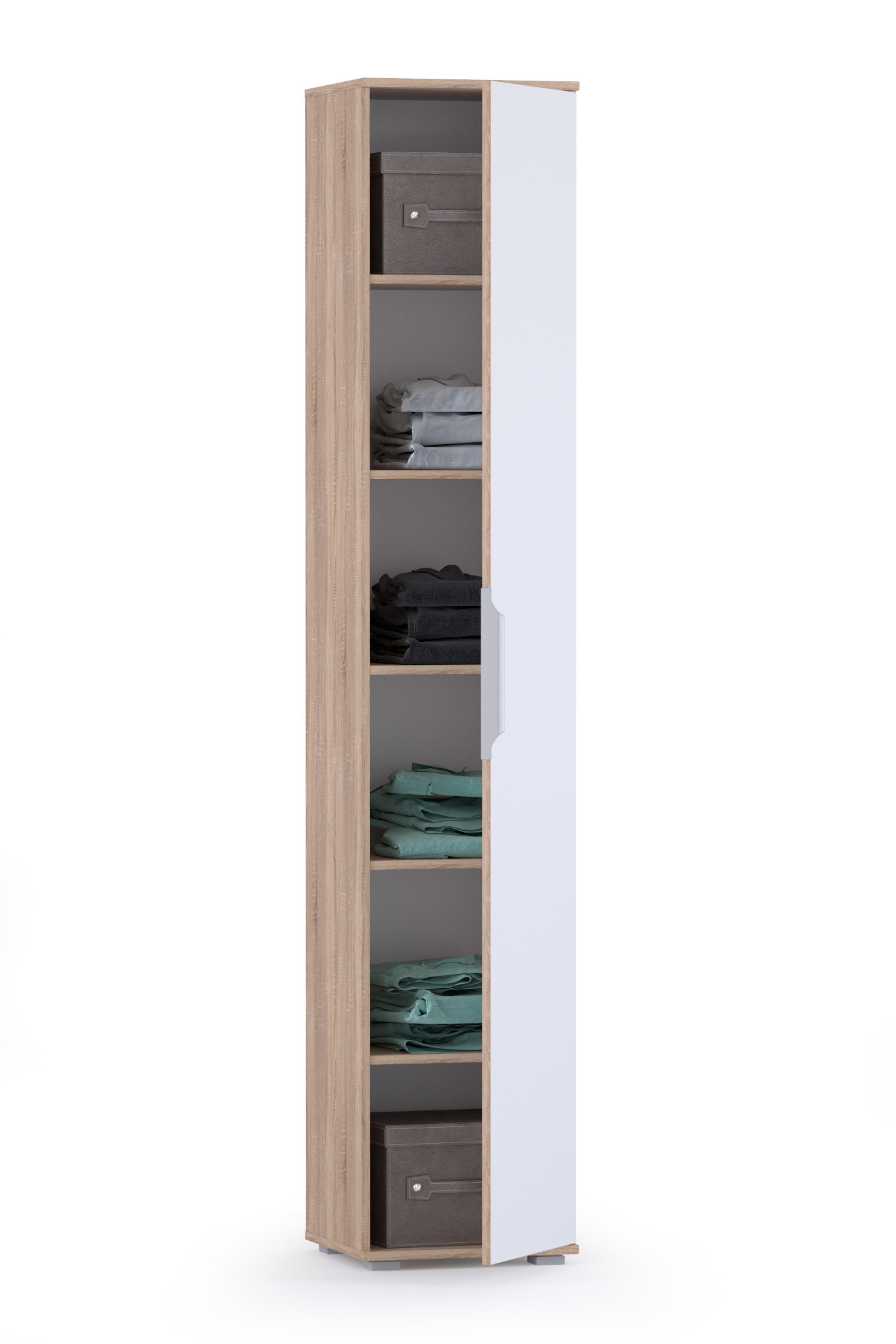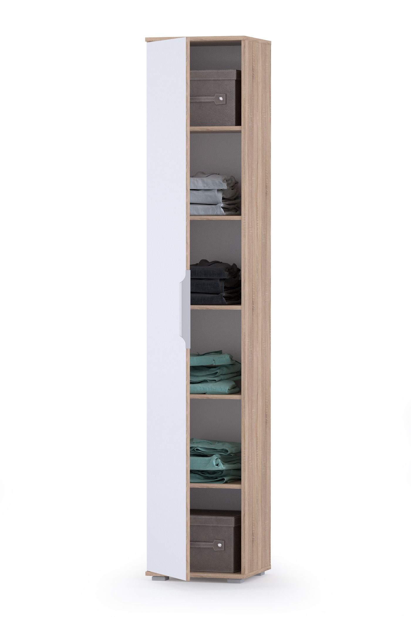 Шкаф-пенал Куба 13.29 - стильное оформление и идеальная эргономика системы хранения. Компактный шкафчик Куба 13.29, с пятью полками за распашной дверкой, добавит комфорта в самый маленький уголок прихожей. Универсальная сборка дверки пенала Куба Шкаф 13.29 поможет составить идеальную мебельную композицию. Пенал Куба Шкаф 13.29 - элемент из набора мебели для прихожих Куба.