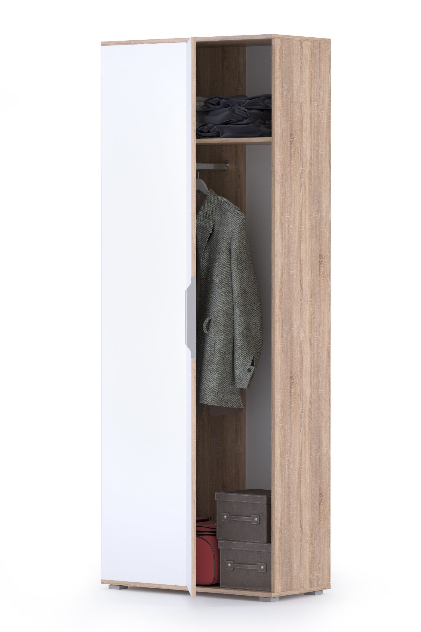 Шкаф для одежды Куба 13.137 - основа множества эргономичных вариантов обустройства прихожей. Конструкция шкафа позволит комфортно использовать труднодоступные места помещения, послужит удобным «мостиком» углового гарнитура. Одностворчатый, распашной шкаф угловой Куба 13.137 оборудован горизонтальной штангой для вешалок и верхней полкой для шляп. Универсальная сборка дверки шкафа углового Куба 13.137 поможет составить идеальную мебельную композицию. Шкаф для одежды Куба 13.137 - элемент из набора мебели для прихожих Куба.