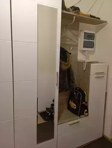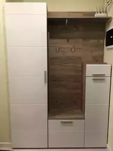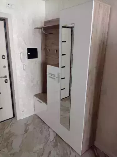 Прихожая Лайн № 01 - практичный подход к сезонному хранению вещей. Рекомендуем обратить внимание на мини прихожую Моби Лайн, ценную компактностью и эргономикой обустраиваемой зоны. Прихожая Моби Лайн представляет собой панель, комбинирующую открытую вешалку, две распашные тумбы и шкаф для одежды. Вешалка выполнена в виде навесной панели с антресольной полкой для шляп, закреплённой на металлическом полкодержателе. Форма полкодержателя выполнена так, что может использоваться в качестве штанги для развешивания одежды на плечиках. На лицевой панели прихожей Моби Лайн предусмотрена пара крючков для размещения сумочек или зонтиков и полочка для мелочей. Креативное решение обустройства открытой вешалки позволяет одежде лучше проветриться, быстрее просохнуть и сохранить форму. Обе тумбы прихожей Моби Лайн послужат отличным местом хранения обуви и других сезонных вещей, низкая тумба ещё и удобная банкетка. Выдвижной ящик высокой тумбы прихожей Моби Лайн удобный для ключницы, аксессуаров по уходу за обувью и одеждой, мелочей. Панель прихожей Моби Лайн установлена на пластиковые опоры высотой 20 мм и обязательно крепится к стене. Распашной, одностворчатый шкаф при скромных размерах, функционален. Шкаф расположен слева, универсальной сборки нет. Внутреннее наполнение шкафа тоже практично - удобная выдвижная штанга для одежды на вешалках и две полочки. Нарядный дизайн шкафа для одежды , с белым глянцем фасада и зеркалом с фацетом смотрится свежо и празднично. Современный стиль, простота формы и модная цветовая гамма делает прихожую Моби Лайн прекрасным дополнением любого интерьера.