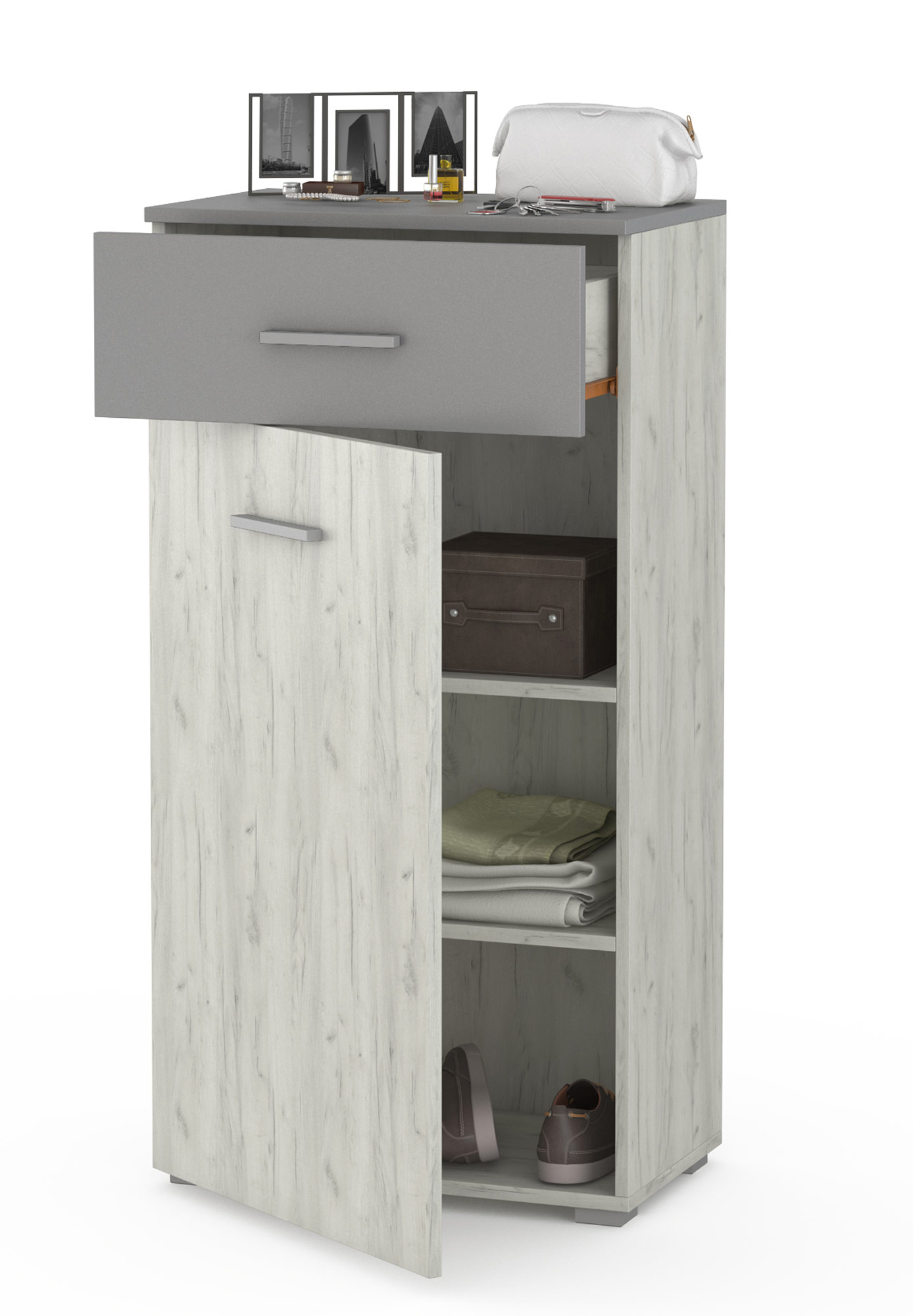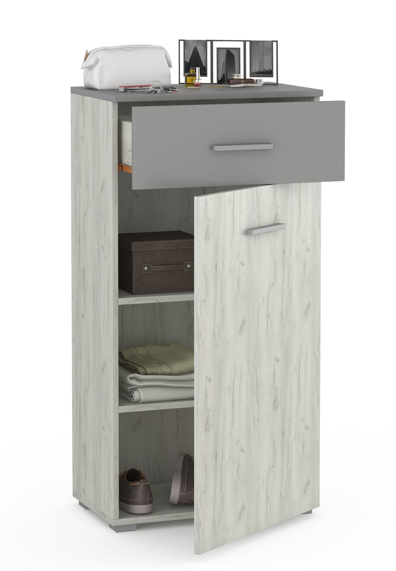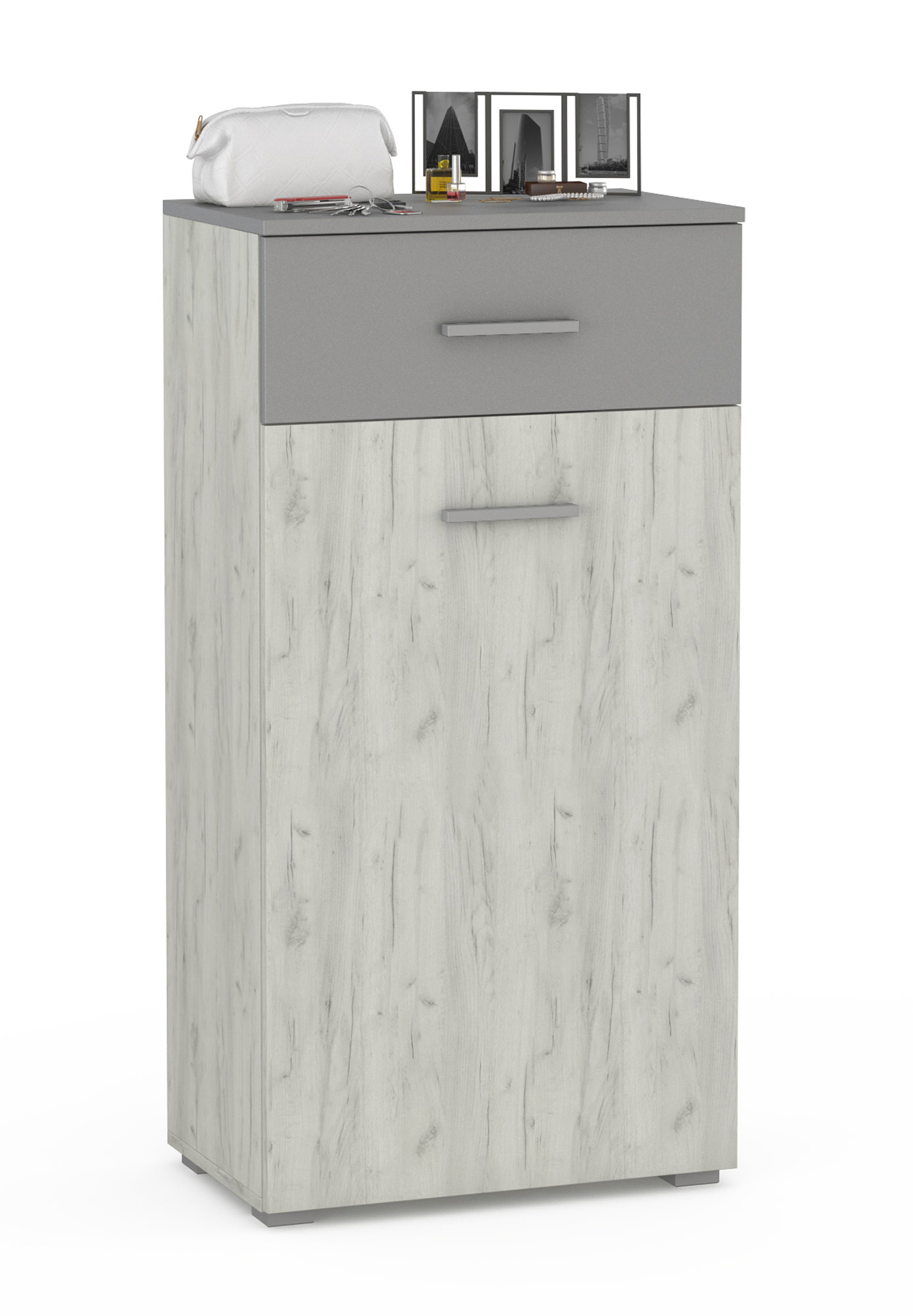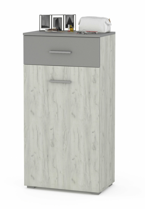Юнона Комод К - удобный комод прибавит комфорт Вашей прихожей. Удобный комод имеет выдвижной ящик и закрытую распашной дверкой нишу с двумя полками внутри. Не смотря на компактные размеры и небольшую глубину комода, он приятно удивит Вас вместительностью и функциональностью. Дверка комода универсальна и может открываться как влево, так и вправо. Сторону открывания дверки Вы определяете при сборке. Юнона Комод - элемент из набора мебели для прихожих Юнона.