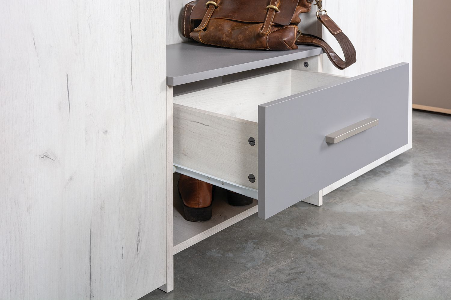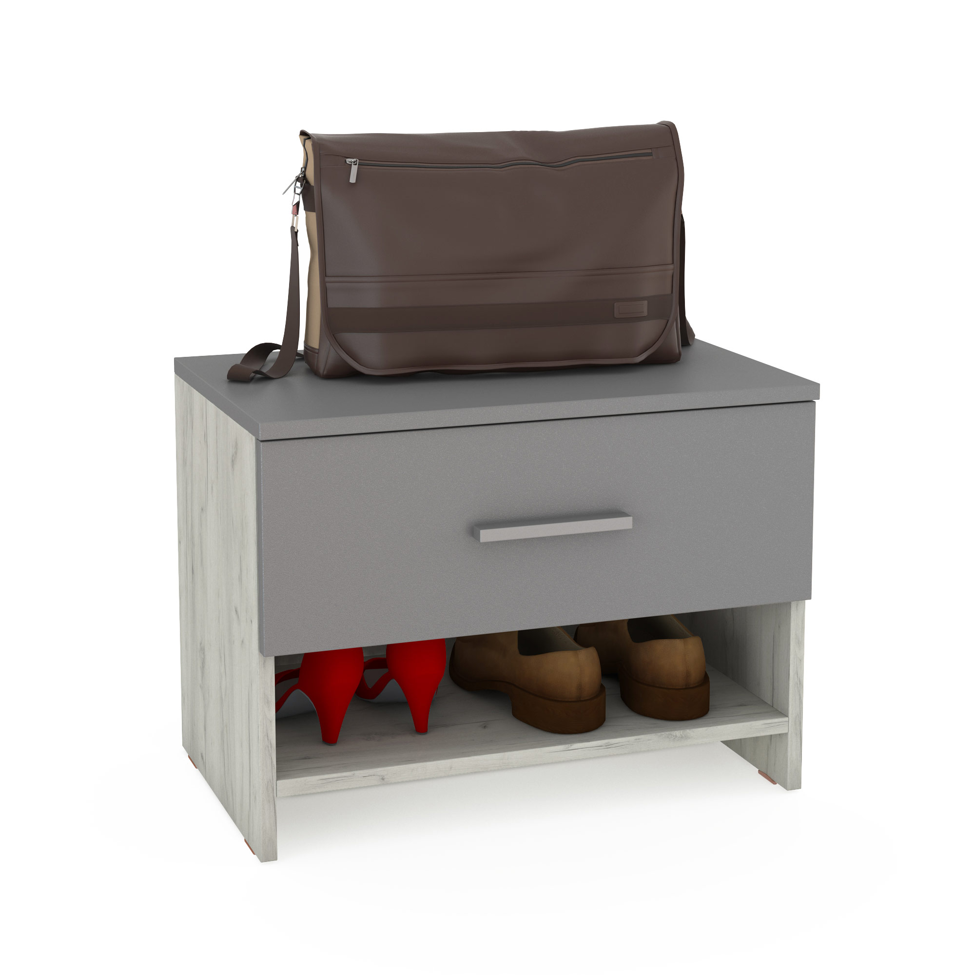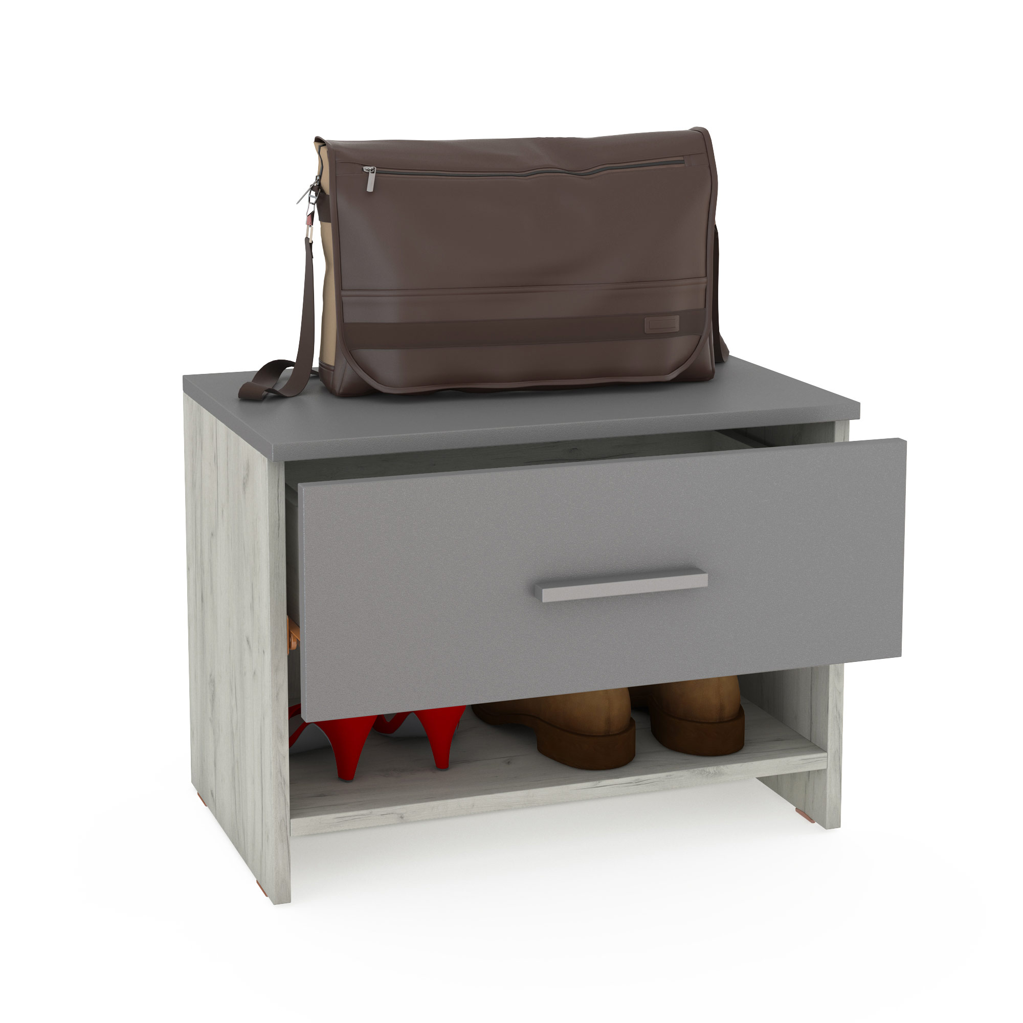 Юнона Тумба - компактная модель совмещает в себе тумбу для обуви и удобную банкетку для переобувания. Тумба имеет выдвижной ящичек для необходимых мелочей и открытую нишу для хранения обуви. При весьма компактных размерах, тумба достаточно устойчива, чтобы служить банкеткой. Юнона Тумба - элемент из набора мебели для прихожих Юнона.