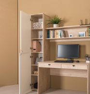 Описание коллекции мебели для домашнего офиса Бостон: Домашний офис Бостон - коллекция удобной и функциональной мебели для современного рабочего места. Серию Бостон составляют 7 практичных модулей, компонуя которые, можно составить комплект мебели в соответствии с Вашим желанием и выделенным бюджетом. Компьютерный стол, открытая и закрытая полочки, три шкафа и комод помогут реализовать Ваш проект, и составят эргономичную обстановку домашнего офиса. Модули практичны, имеют универсальную сборку, что расширяет варианты компоновок и расположения в интерьере кабинетов, составляя максимально комфортную рабочую атмосферу. Стильный дизайн мебели Бостон подчёркнут сочетанием красивого древесного цвета корпуса, белых фасадов, чёрных матовых металлических ручек, расположенных в специальных угловых углублениях на дверках и тонированного стекла витрин, открывающихся при помощи механизма push (нажмите на уголок и дверка откроется). Современный процесс производства мебели при постоянном контроле качества результатов и материалов гарантируют длительный срок службы и соответствие высоким стандартам. Корпус мебели Бостон изготовлен из ламинированной ДСП 16 мм., сертифицированной к изготовлению детской мебели. Глухие дверки шкафов и комода выполнены из прочной и экологичной МДФ плиты, ламинированной плёнкой ПВХ с тактильно приятным покрытием софт-тач. Торцы деталей мебели защищены кантом ПВХ 0,4 мм. и 2 мм, украшающим изделия, защищающим от механических повреждений и продлевающим срок службы. В сборке мебели используется фурнитура высокого качества проверенных временем поставщиков. Глухие распашные двери закреплены на четырёхшарнирных петлях, дверки-витрины из тонированного стекла - на осевых петлях, выкатные ящики - на металлических шариковых направляющих полного выдвижения. Поставка мебели производится в разобранном виде, в прочной упаковке, защищающей Вашу покупку при транспортировке и хранении. К каждому изделию прилагается гарантийный талон и подробная инструкция по сборке и эксплуатации в комплекте с необходимой для сборки фурнитурой.