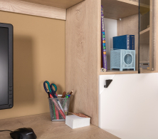 Описание коллекции мебели для домашнего офиса Бостон: Домашний офис Бостон - коллекция удобной и функциональной мебели для современного рабочего места. Серию Бостон составляют 7 практичных модулей, компонуя которые, можно составить комплект мебели в соответствии с Вашим желанием и выделенным бюджетом. Компьютерный стол, открытая и закрытая полочки, три шкафа и комод помогут реализовать Ваш проект, и составят эргономичную обстановку домашнего офиса. Модули практичны, имеют универсальную сборку, что расширяет варианты компоновок и расположения в интерьере кабинетов, составляя максимально комфортную рабочую атмосферу. Стильный дизайн мебели Бостон подчёркнут сочетанием красивого древесного цвета корпуса, белых фасадов, чёрных матовых металлических ручек, расположенных в специальных угловых углублениях на дверках и тонированного стекла витрин, открывающихся при помощи механизма push (нажмите на уголок и дверка откроется). Современный процесс производства мебели при постоянном контроле качества результатов и материалов гарантируют длительный срок службы и соответствие высоким стандартам. Корпус мебели Бостон изготовлен из ламинированной ДСП 16 мм., сертифицированной к изготовлению детской мебели. Глухие дверки шкафов и комода выполнены из прочной и экологичной МДФ плиты, ламинированной плёнкой ПВХ с тактильно приятным покрытием софт-тач. Торцы деталей мебели защищены кантом ПВХ 0,4 мм. и 2 мм, украшающим изделия, защищающим от механических повреждений и продлевающим срок службы. В сборке мебели используется фурнитура высокого качества проверенных временем поставщиков. Глухие распашные двери закреплены на четырёхшарнирных петлях, дверки-витрины из тонированного стекла - на осевых петлях, выкатные ящики - на металлических шариковых направляющих полного выдвижения. Поставка мебели производится в разобранном виде, в прочной упаковке, защищающей Вашу покупку при транспортировке и хранении. К каждому изделию прилагается гарантийный талон и подробная инструкция по сборке и эксплуатации в комплекте с необходимой для сборки фурнитурой.
