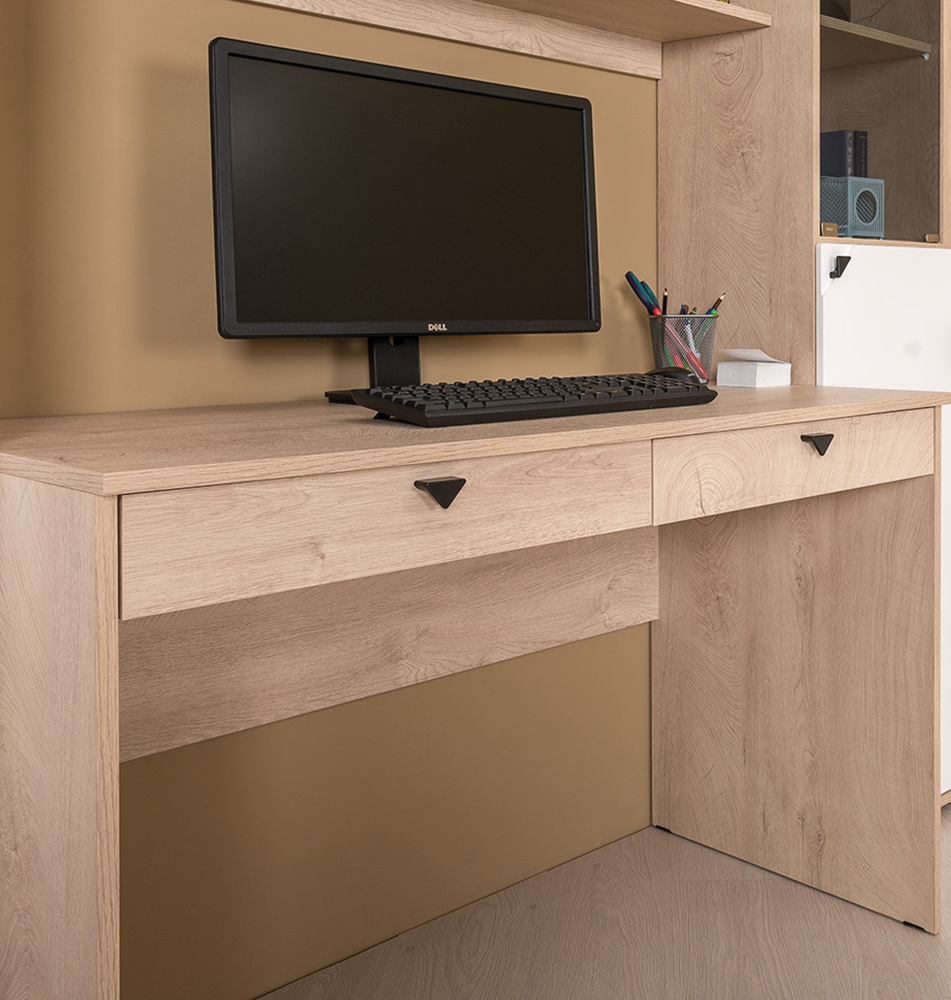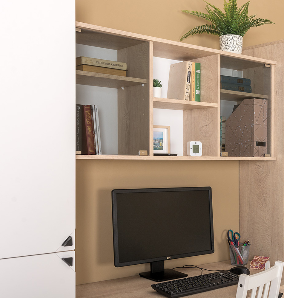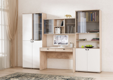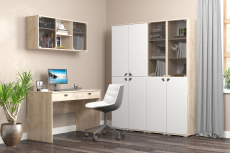 Описание коллекции мебели для домашнего офиса Бостон: Домашний офис Бостон - коллекция удобной и функциональной мебели для современного рабочего места. Серию Бостон составляют 7 практичных модулей, компонуя которые, можно составить комплект мебели в соответствии с Вашим желанием и выделенным бюджетом. Компьютерный стол, открытая и закрытая полочки, три шкафа и комод помогут реализовать Ваш проект, и составят эргономичную обстановку домашнего офиса. Модули практичны, имеют универсальную сборку, что расширяет варианты компоновок и расположения в интерьере кабинетов, составляя максимально комфортную рабочую атмосферу. Стильный дизайн мебели Бостон подчёркнут сочетанием красивого древесного цвета корпуса, белых фасадов, чёрных матовых металлических ручек, расположенных в специальных угловых углублениях на дверках и тонированного стекла витрин, открывающихся при помощи механизма push (нажмите на уголок и дверка откроется). Современный процесс производства мебели при постоянном контроле качества результатов и материалов гарантируют длительный срок службы и соответствие высоким стандартам. Корпус мебели Бостон изготовлен из ламинированной ДСП 16 мм., сертифицированной к изготовлению детской мебели. Глухие дверки шкафов и комода выполнены из прочной и экологичной МДФ плиты, ламинированной плёнкой ПВХ с тактильно приятным покрытием софт-тач. Торцы деталей мебели защищены кантом ПВХ 0,4 мм. и 2 мм, украшающим изделия, защищающим от механических повреждений и продлевающим срок службы. В сборке мебели используется фурнитура высокого качества проверенных временем поставщиков. Глухие распашные двери закреплены на четырёхшарнирных петлях, дверки-витрины из тонированного стекла - на осевых петлях, выкатные ящики - на металлических шариковых направляющих полного выдвижения. Поставка мебели производится в разобранном виде, в прочной упаковке, защищающей Вашу покупку при транспортировке и хранении. К каждому изделию прилагается гарантийный талон и подробная инструкция по сборке и эксплуатации в комплекте с необходимой для сборки фурнитурой.