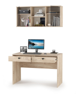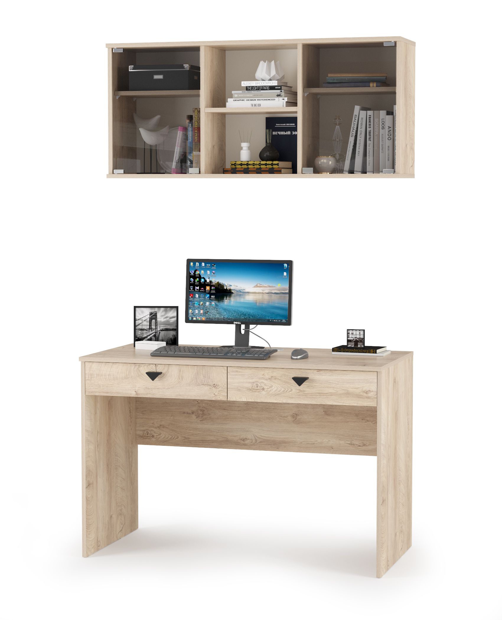 Стол с навесным шкафом Бостон № 12 - простой, универсальный комплект мебели составит основу комфортного рабочего места. Классический дизайн, элегантный цвет набора мебели позволит с успехом интегрировать его в обстановку современного кабинета. Компьютерный стол имеет вместительную столешницу, на которой достаточно места для ноутбука или монитора стационарного компьютера. Под столешницей на шариковых металлических направляющих закреплены два выдвижных ящика для документов и канцтоваров. Компактный навесной шкафчик увеличит комфорт и эргономичность Вашего рабочего места. На полочках шкафчика Вы сможете разместить необходимые для работы и учебы материалы на удобном, близком расстоянии. Шкаф предполагает крепление к стене, комплект крепёжной фурнитуры входит в поставку. Максимальная нагрузка на каждую полку шкафа составляет 3 кг. Центральная ниша шкафа открытая, боковые закрыты дверками из тонированного стекла, открывающихся при помощи механизма push (нажмите на уголок и дверка откроется). Стол с навесным шкафом Бостон состоит из элементов набора мебели для домашнего офиса Бостон.