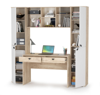 Мебель для работы дома Бостон № 27 - универсальный комплект мебели составит комфортное рабочее место в условиях домашнего кабинета. Классический дизайн, элегантный цвет мебели позволит с успехом интегрировать его в обстановку современного кабинета. В данной комплектации набор мебели состоит из компьютерного стола, навесной открытой полочки и двух шкафов-пеналов с глухими дверками. Все элементы мебели имеют универсальную сборку и могут быть расположены друг относительно друга в удобном Вам порядке. Компьютерный стол имеет вместительную столешницу, на которой достаточно места для ноутбука или монитора стационарного компьютера. Под столешницей на шариковых металлических направляющих закреплены два выдвижных ящика для документов и канцтоваров. Компактный навесной шкафчик увеличит комфорт и эргономичность Вашего рабочего места. Центральная ниша шкафа открытая, боковые закрыты дверками из тонированного стекла, открывающихся при помощи механизма push (нажмите на уголок и дверка откроется). На полочках шкафчика Вы сможете разместить необходимые для работы и учебы материалы на удобном, близком расстоянии. Шкаф предполагает крепление к стене, комплект крепёжной фурнитуры входит в поставку. Максимальная нагрузка на каждую полку шкафа составляет 3 кг. Узкий, высокий шкаф-пенал увеличит комфорт и эргономичность Вашего рабочего места. В данную комплектацию входят два таких модуля. Конструктивно, Двери шкафа-пенала универсальны и могут открываться в любую сторону, что нужно определить при первой сборке модуля. Мебель для работы дома Бостон состоит из элементов набора мебели для домашнего офиса Бостон.