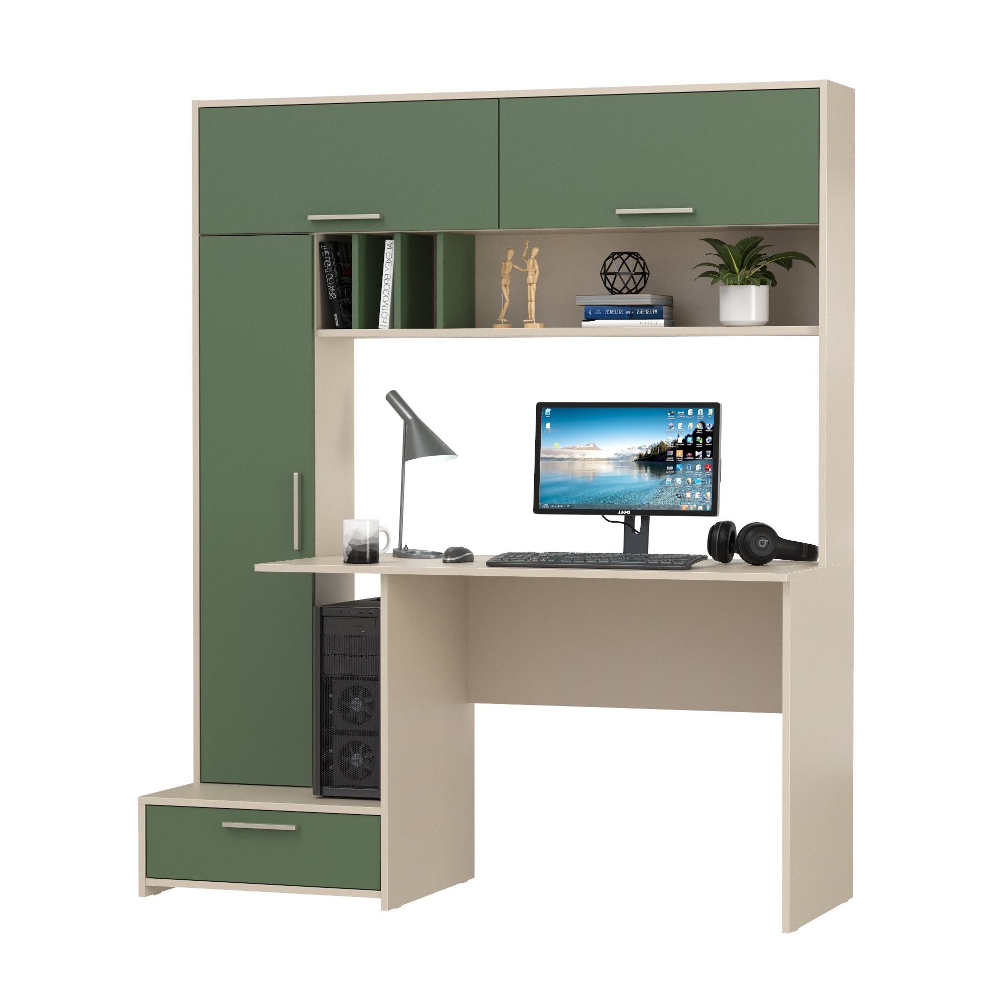 Данная модель стола удивит и порадует своей функциональностью. Стол конструктивно продуман до мелочей и может заменить собой компактную стеночку для детской комнаты. Большая столешница удобна для работы, а надстройка над ней поможет держать учебные принадлежности или необходимые для работы документы на расстоянии вытянутой руки. Надстройка имеет открытую полочку, разделенную перегородками на несколько отсеков и пару, закрытых откидными дверками, ниш. Сбоку у стола расположен пенал с тремя полочками за распашной дверкой, который установлен на тумбу с выдвижным ящиком. Соединение всех элементов стола произведено таким образом, что сбоку от столешницы образуется открытая ниша, в которой может разместиться системный блок стационарного компьютера. Распашная дверка закреплена на четырёхшарнирных петлях, горизонтальные фасады - на газовых амортизаторах, выдвижной ящик - на шариковых направляющих. Ручки стола изготовлены из АВS пластика, цвет - сатин. Процесс производства компьютеризирован и проходит постоянный контроль качества, что гарантирует высокую точность в изготовлении мебели. Поставка стола производится в разобранном виде, надёжно запакованным, к изделию прилагается инструкция по сборке и необходимая для сборки фурнитура.