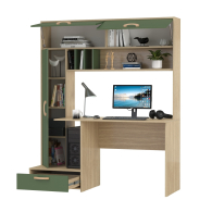 Данная модель стола удивит и порадует своей функциональностью. Стол конструктивно продуман до мелочей и может заменить собой компактную стеночку для детской комнаты. Большая столешница удобна для работы, а надстройка над ней поможет держать учебные принадлежности или необходимые для работы документы на расстоянии вытянутой руки. Надстройка имеет открытую полочку, разделенную перегородками на несколько отсеков и пару, закрытых откидными дверками, ниш. Сбоку у стола расположен пенал с тремя полочками за распашной дверкой, который установлен на тумбу с выдвижным ящиком. Соединение всех элементов стола произведено таким образом, что сбоку от столешницы образуется открытая ниша, в которой может разместиться системный блок стационарного компьютера. Распашная дверка закреплена на четырёхшарнирных петлях, горизонтальные фасады - на газовых амортизаторах, выдвижной ящик - на шариковых направляющих. Ручки стола изготовлены из АВS пластика, цвет - сатин. Процесс производства компьютеризирован и проходит постоянный контроль качества, что гарантирует высокую точность в изготовлении мебели. Поставка стола производится в разобранном виде, надёжно запакованным, к изделию прилагается инструкция по сборке и необходимая для сборки фурнитура.