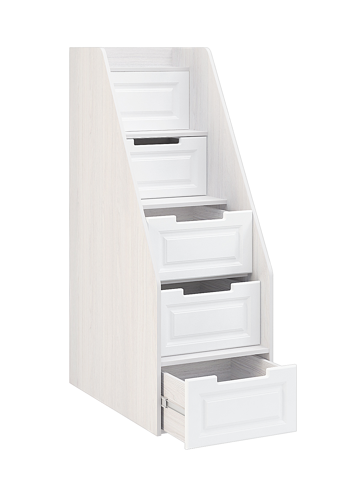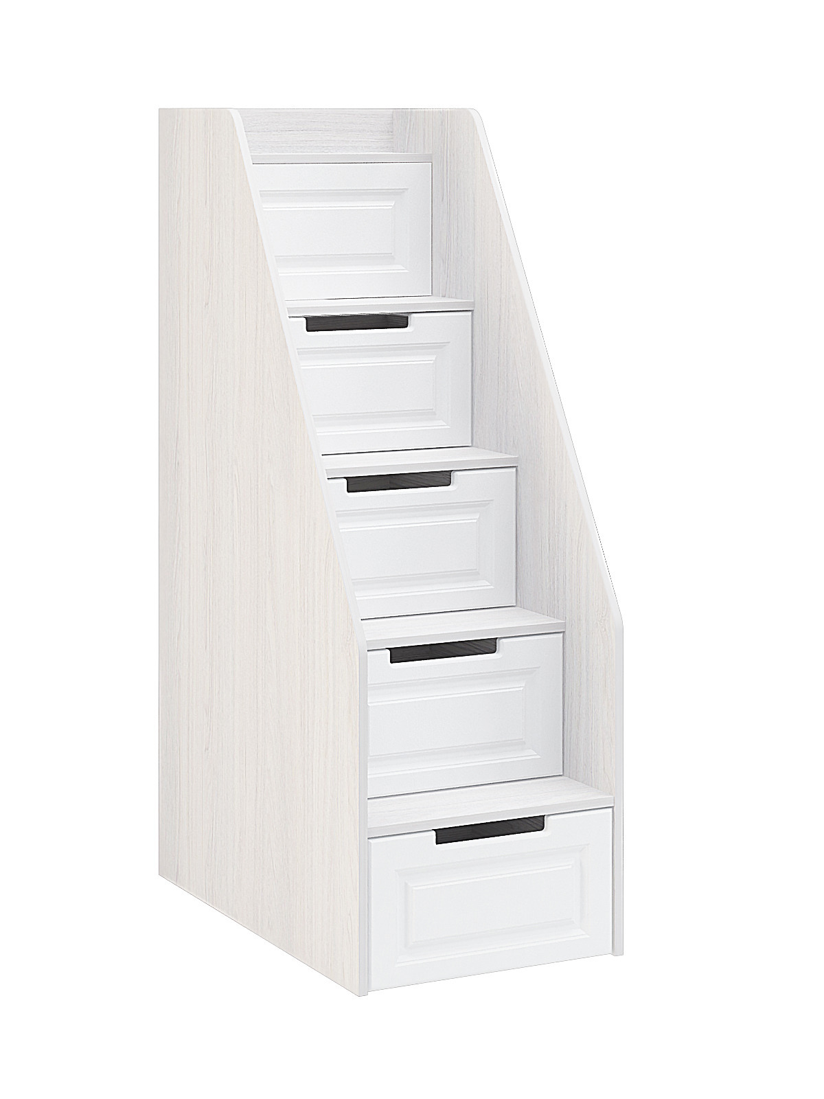 Каждому ребенку важно иметь комфортное, надежное, функциональное личное пространство, в котором удобно отдыхать, развиваться и играть. Лестница станет удобным местом для хранения вещей, книг, игрушек. Комплектуется с кроватью КР-723. Материал фасада МДФ, материал корпуса ЛДСП. Ящики оснащены шариковыми направляющими. Глубина ящиков 832 мм.