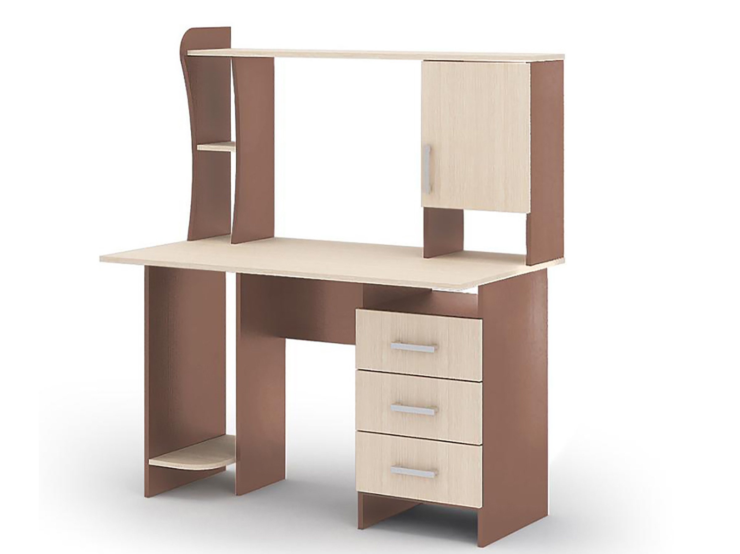 Стол компьютерный №5 является сочетанием лаконичного дизайна и высокой функциональности, благодаря чему стол будет удачно смотреться в любом интерьере. Комлектация стола - три открытые и одна закрытая ниша, три закрытых ящика, открытая полка и подставка под системный блок. Материал ручек: Пластмасса. Направляющие: роликовые.