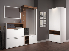 Описание коллекции мебели для прихожей Лайт: Прихожие Лайт - стильная и современная мебель для Вашего дома. Данная коллекция придётся по вкусу любителям натурального цвета, прямых линий и высокой функциональности. Искристо-белые фасады прихожей Лайт, оттеняются тёплым тоном корпуса мебели, окрашенном под древесину ореха. Ровные линии, прямые углы создают ощущение порядка, чистоты и гармонии. Коллекция располагает двумя шкафами, тумбой для обуви и зеркалом. Комбинируя модули по своему желанию, Вы можете составить красивую и удобную обстановку прихожей. Изготовлена мебель Лайт из материалов высокого качества под постоянным контролем качества. Корпус и фасады прихожей выполнены из ламинированной ДСП 16 мм., края закромлены плёнкой ПВХ. Распашные двери мебели закреплены на четырехшарнирных петлях, для открывания некоторых используется механизм Push. Стильные ручки и крючки открытой вешалки выполнены из прочного ABS-пластика цвета «сатин». Поставляется мебель Лайт в разобранном виде, надёжно упакованной, в комплекте с фурнитурой. К каждому модулю прилагается пакет документов, включающий гарантийный талон и инструкцию по сборке. Коллекция мебели для прихожей Лайт идеально совмещается с модулями гостиной Гринвич.