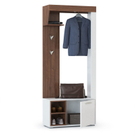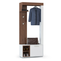Мини-прихожая Лайт 10.03 вешалка с нишей - оригинальная модель станет основой удобной обстановки Вашей прихожей. Данный шкаф состоит из тумбы и П-образной стойки с крючками, штангой для одежды и открытой полочки для головных уборов или предметов декора. Тумба располагает закрытой распашной дверкой нишей и открытой нишей с полочкой внутри. При весьма компактных размерах (глубина модуля составляет всего 32 см.) шкаф порадует высокой функциональностью. Шкаф комбинированный Лайт 10.03 вешалка с нишей - модуль из коллекции мебели для прихожей Лайт.