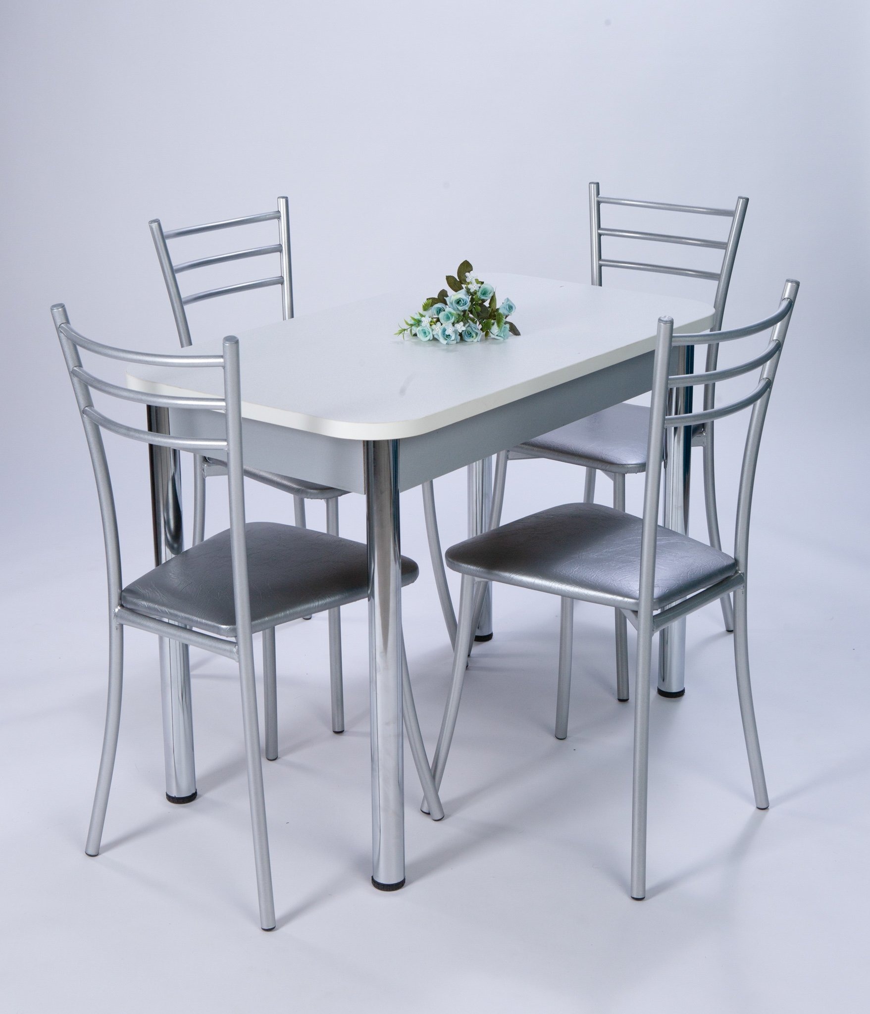 Обеденная группа ПФ/Хокко состоит из стола размер 58*100*75 и 4-х стульев.Столешница стола 22 мм.Стулья на металлокаркасе обивка экокожа.Диаметр трубы каркаса22 мм