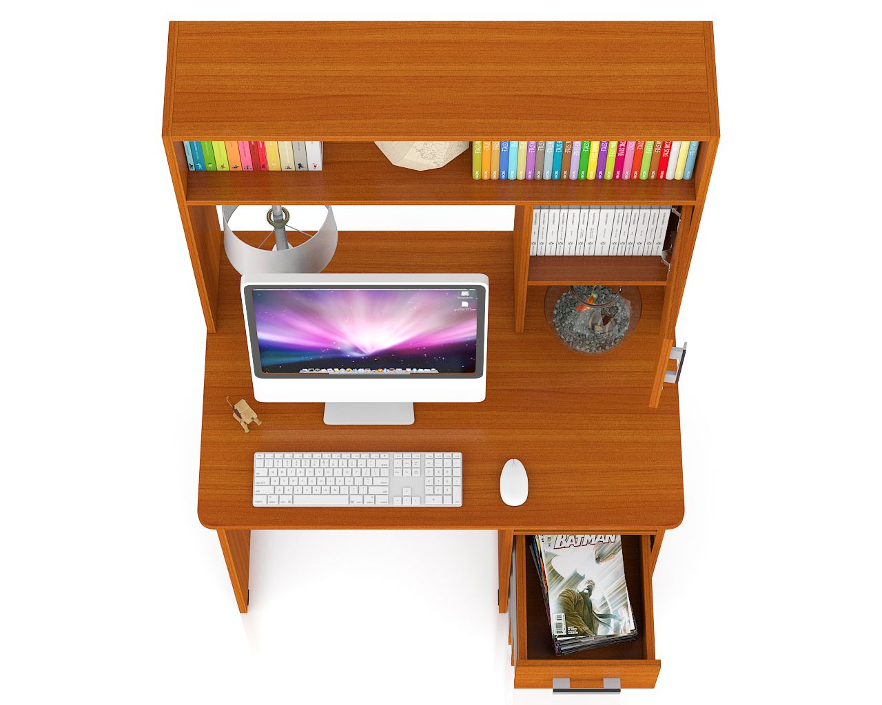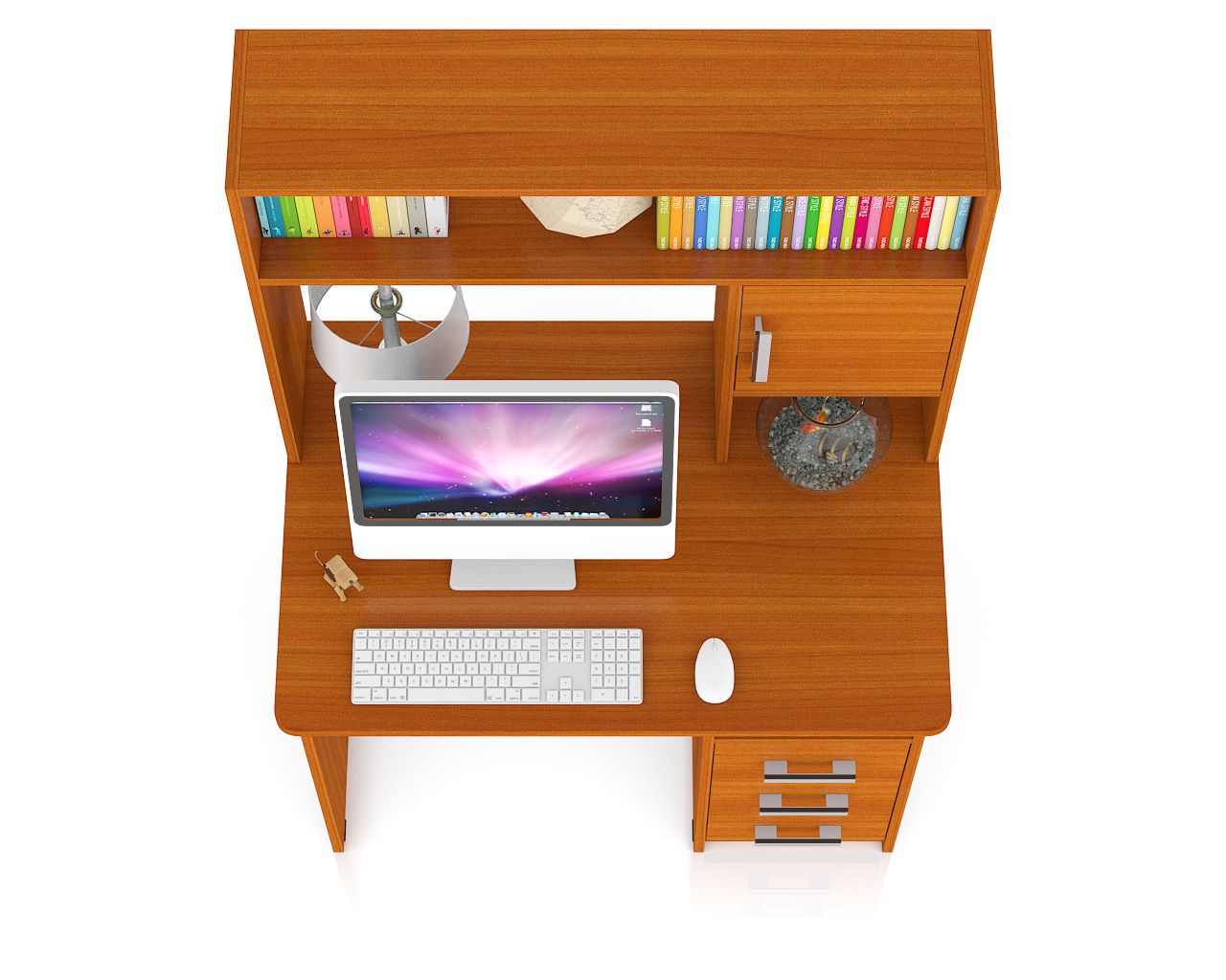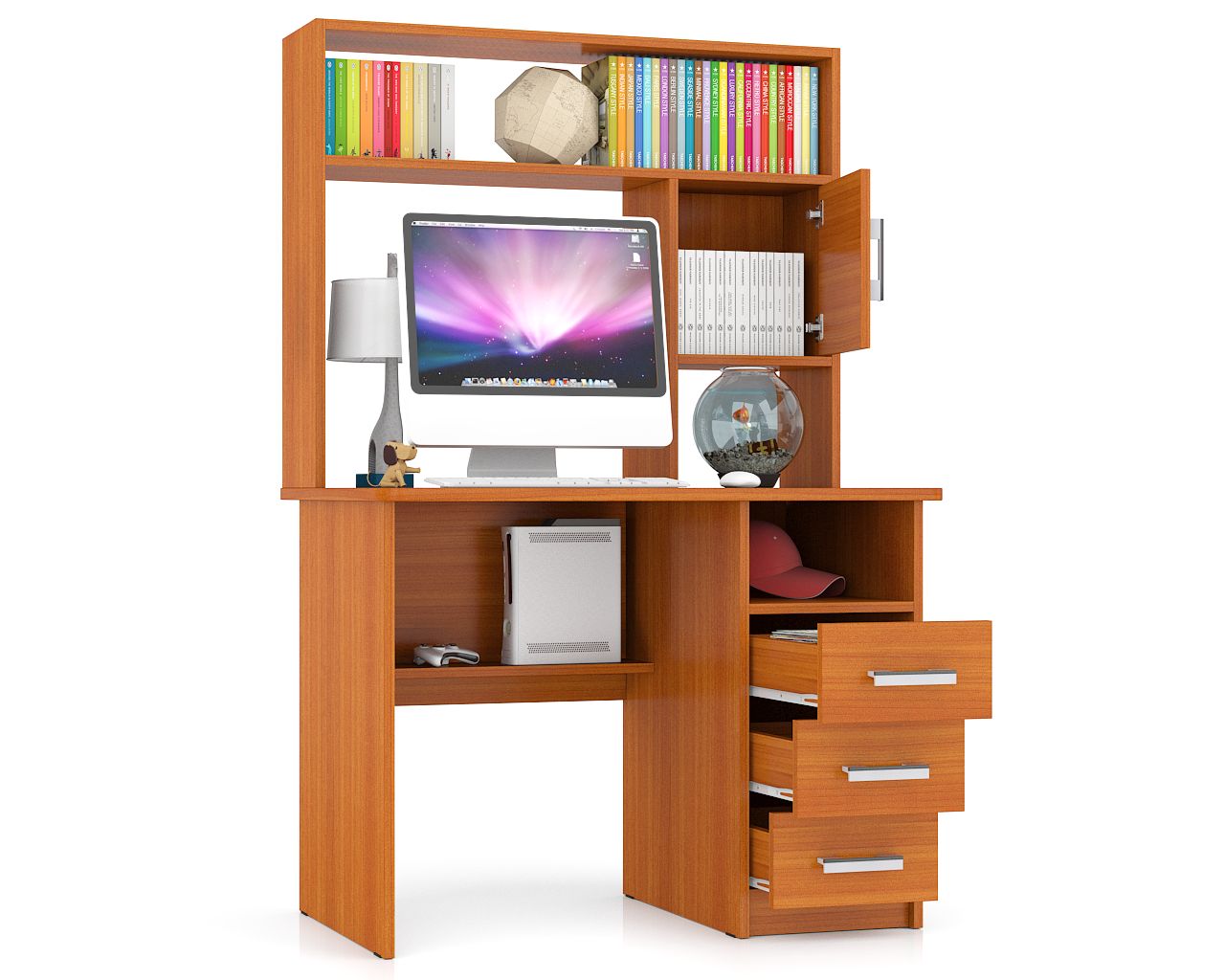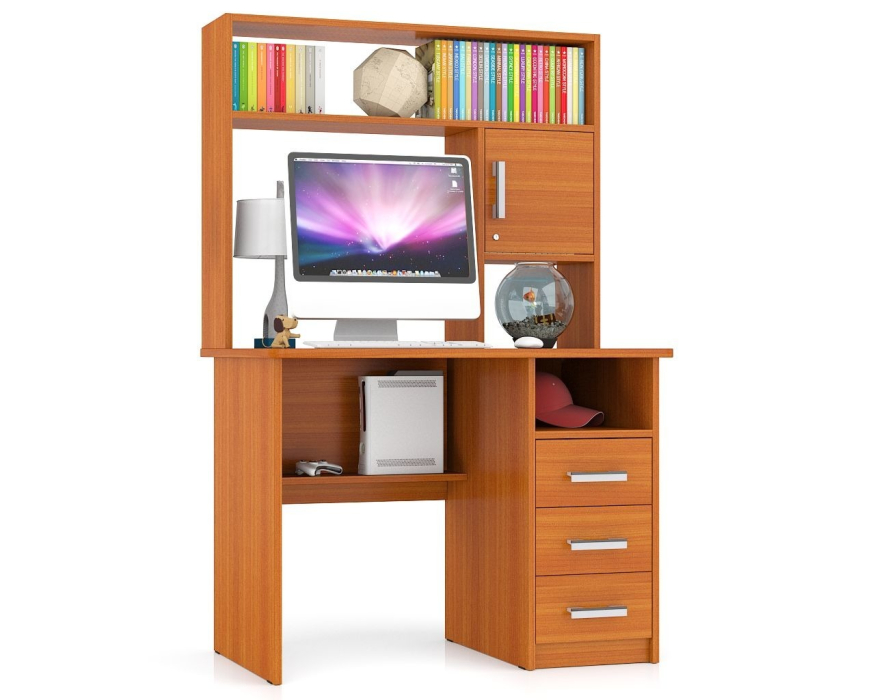 Конструктивно стол выполнен в классическом компактном варианте - удобная столешница, надстройка с нишей для монитора и тумба с ящиками. Вместительная столешница разместит ноутбук или монитор с клавиатурой, оставив свободное место для документов и учебных пособий. Под столешницей оборудованы две открытые ниши, которые сохранят «под рукой» всё первоочередное и достаточно места для установки системного блока. Справа у стола расположена тумба с тремя вместительными выдвижными ящиками, для хранения деловых бумаг и канцтоваров. Надстройка стола ограждает зону для установки монитора, защищая его от внешних повреждений, без ограничения его в размерах! Вместительная ниша под монитор, размером 60х65х53 см., позволяет разместить монитор любой диагонали. Верхняя полка и боковые закрытая и открытая ниши надстройки отлично разместятся справочники, учебники, папки с документами и аппаратуру. Стильный дизайн, исполнение в интересной и модной цветовой гамме позволят столу стать «равноправным» элементом современного интерьера.