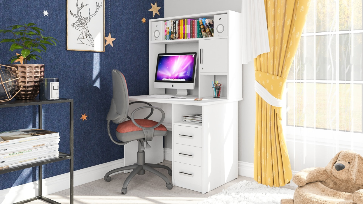 Конструктивно стол выполнен в классическом компактном варианте - удобная столешница, надстройка с нишей для монитора и тумба с ящиками. Вместительная столешница разместит ноутбук или монитор с клавиатурой, оставив свободное место для документов и учебных пособий. Под столешницей оборудованы две открытые ниши, которые сохранят «под рукой» всё первоочередное и достаточно места для установки системного блока. Справа у стола расположена тумба с тремя вместительными выдвижными ящиками, для хранения деловых бумаг и канцтоваров. Надстройка стола ограждает зону для установки монитора, защищая его от внешних повреждений, без ограничения его в размерах! Вместительная ниша под монитор, размером 60х65х53 см., позволяет разместить монитор любой диагонали. Верхняя полка и боковые закрытая и открытая ниши надстройки отлично разместятся справочники, учебники, папки с документами и аппаратуру. Стильный дизайн, исполнение в интересной и модной цветовой гамме позволят столу стать «равноправным» элементом современного интерьера.