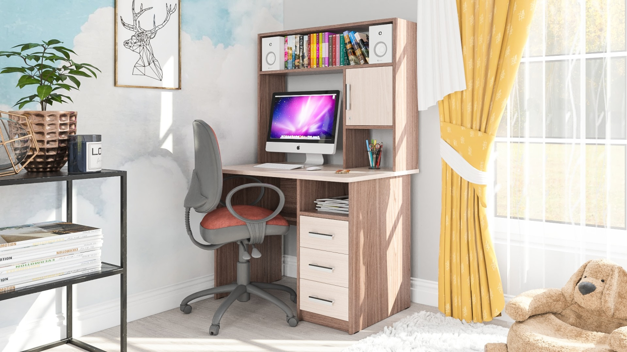 Конструктивно стол выполнен в классическом компактном варианте - удобная столешница, надстройка с нишей для монитора и тумба с ящиками. Вместительная столешница разместит ноутбук или монитор с клавиатурой, оставив свободное место для документов и учебных пособий. Под столешницей оборудованы две открытые ниши, которые сохранят «под рукой» всё первоочередное и достаточно места для установки системного блока. Справа у стола расположена тумба с тремя вместительными выдвижными ящиками, для хранения деловых бумаг и канцтоваров. Надстройка стола ограждает зону для установки монитора, защищая его от внешних повреждений, без ограничения его в размерах! Вместительная ниша под монитор, размером 60х65х53 см., позволяет разместить монитор любой диагонали. Верхняя полка и боковые закрытая и открытая ниши надстройки отлично разместятся справочники, учебники, папки с документами и аппаратуру. Стильный дизайн, исполнение в интересной и модной цветовой гамме позволят столу стать «равноправным» элементом современного интерьера.