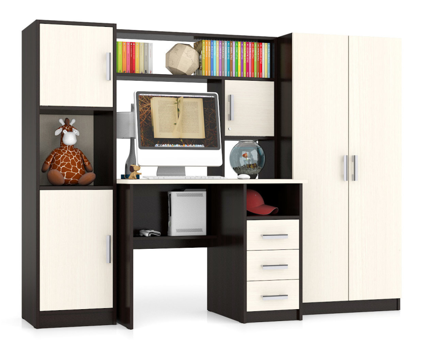Размещение модулей друг относительно друга Вы выбираете по своему вкусу. Шкаф, стол и пенал могут поменяться местами по Вашему желанию.
