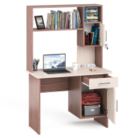 Стол письменный с надстройкой МД-1-09Н - ключевой элемент рабочего уголка дома и в офисе. Компактный и стильный комплект поддержит любую дизайн-концепцию интерьера деловой части интерьера Вашего кабинета. Устойчивый однотумбовый стол обладает хорошей системой хранения - распашное отделение и выдвижной ящик расположены справа. Скруглённая столешница, размером 105х57 см., удобно разместит деловые бумаги, монитор, клавиатуру, создавая эргономичное рабочее место. Дополнение стола письменного надстройкой - самый простой приём увеличения его функциональности, без затраты свободной площади. Стол письменный с надстройкой можно использовать и в качестве компьютерного. Ниша под монитор - (ШхГхВ) 85х25х45 см. Надёжные опоры стола выделяют нишу-ограждение достаточную для установки системного блока, охраняя его от внешнего повреждения. Надстройка для стола включает одно закрытое распашной дверкой отделение, две открытые ниши и антресольную полку. Распашное отделение надстройки закрывается на ключ, что позволит там хранить важные документы и личные вещи. Респектабельность класссики дизайна стола с надстройкой интересно дополняют модный колер мебели и оригинальные стильные ручки. Стол письменный с надстройкойвыпускается в популярных цветах, что поможет выбрать Вам модель в тон к основному цвету мебели. Изготовлен из высококачественных, экологически безопасных материалов на современном оборудовании. Ламинированная плита имеет гигиенический сертификат Е1 и относится к самой безопасной группе ДСП, допустимой для детской комнаты. Кант ПВХ толщиной 2 мм. и 0,4 мм., использованный для обработки края деталей, защищает от повреждений и придаёт изделию эстетический вид. Поставляетсяв разобранном виде, надёжно упакованным, с инструкцией и комплектом фурнитуры для сборки.