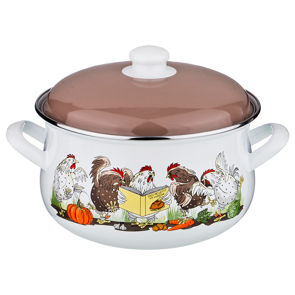Кастрюля agness эмалированная, серия Куриный переполох 6 л, диаметр 24 см, высота 14 см. Материал: Сталь Эмалированная.