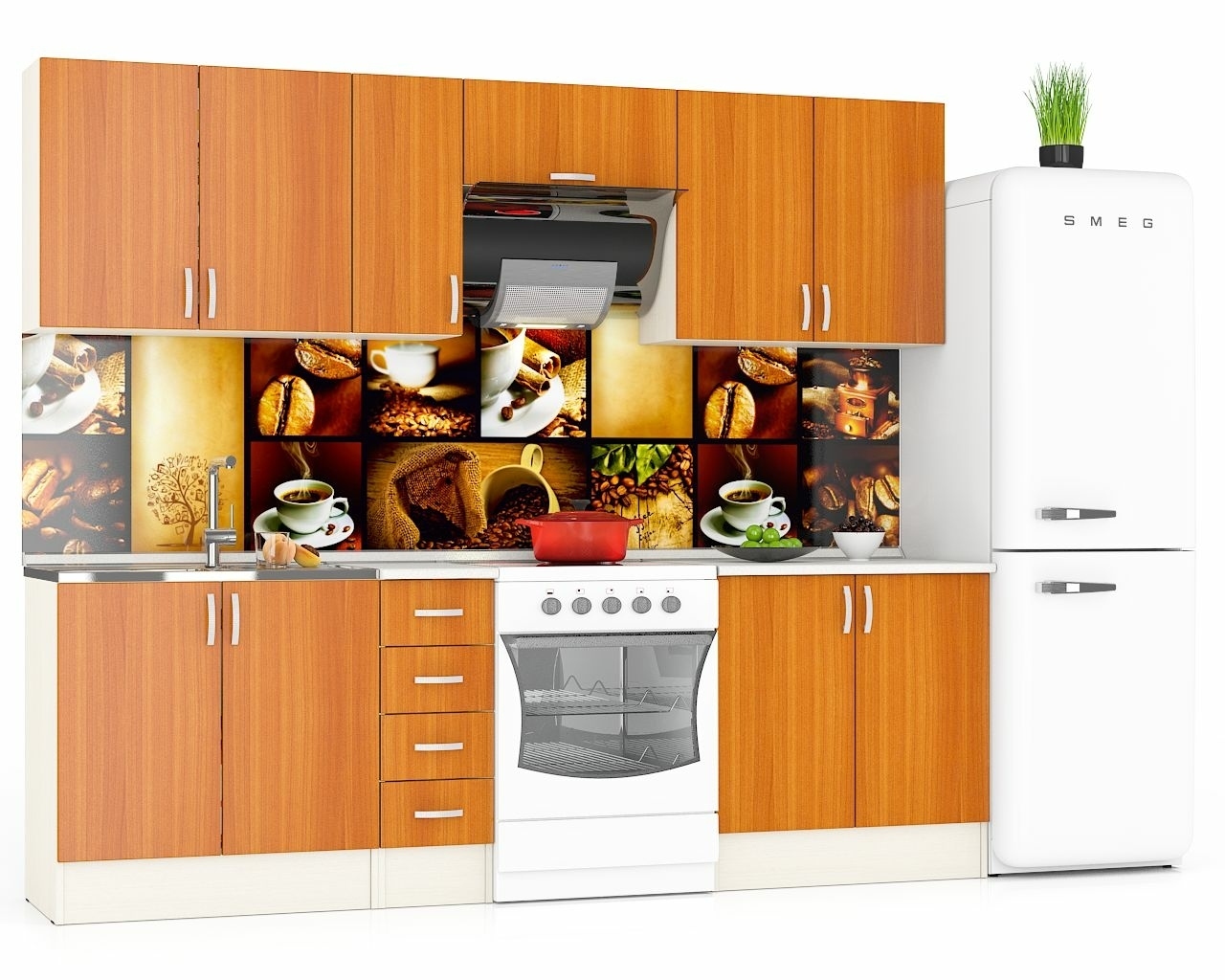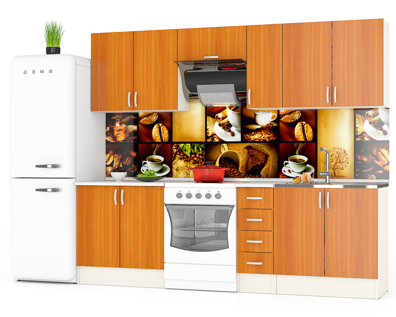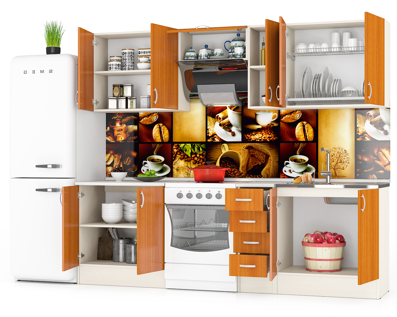 Кухня Мери 07 - практичность, комфорт и эстетика дизайна. Выполненная в стиле модерн, кухня Мери станет находкой для любителей современного направления в оформлении интерьера. Солидные и компактные, горизонтальный и с ящиками, эргономичные модули кухни объединены в удобный и эффектный ансамбль. Верхний ярус кухни включает четыре навесных модуля - два двудверных шкафа 80 см., однодверный шкаф 30 см. и горизонтальный шкаф над вытяжкой 60 см. Нижний ярус кухни состоит из двудверного стола 80 см., стола под мойку 80 см. и стола с 4 ящиками 30 см. Все модули с распашными дверками (кроме стола под мойку) имеют внутреннюю полку, за подъёмной дверью горизонтального шкафа - ниша. Такой состав кухни поможет с максимальным удобством использовать полезную площадь кухни. Обращаем внимание, что порядок размещения модулей кухни Вы определяете сами, согласно своим предпочтениям. Бонусом данной кухни является уже закромленная столешница (цвет столешницы № 130 сахара белая) для каждого стола своя и нижний цоколь, входящие в комплект поставки. И, конечно же, стоит обратить внимание на экономическую составляющую - цена кухни Мери просто подарок для семейного бюджета. Кухня Мери выполнена из экологически безопасной высокого качества ламинированной ДСП 16 мм. Торцы фасадов кухни закромлены 2-х миллиметровой противоударной кромкой ABS. Торцы остальных деталей - кромкой ПВХ - 0,4 мм. Использование лучшей фурнитуры отечественного и импортного производства повышает уровень качества кухни и срок её службы. Кухня Мери соответствует ГОСТу и санитарно-эпидемиологическим нормам, сертифицирована и имеет соответствующие документы. Поставка кухонных модулей производится в разобранном виде, надёжно упакованными, с приложенной подробной инструкцией по сборке. Обращаем Ваше внимание, что заднюю панель (фартук), встроенную технику, мойки, смесители для кухни, воздухоочистители Вы приобретаете отдельно. Стильная Кухня Мери 7 - достойная кухня за реальные деньги!