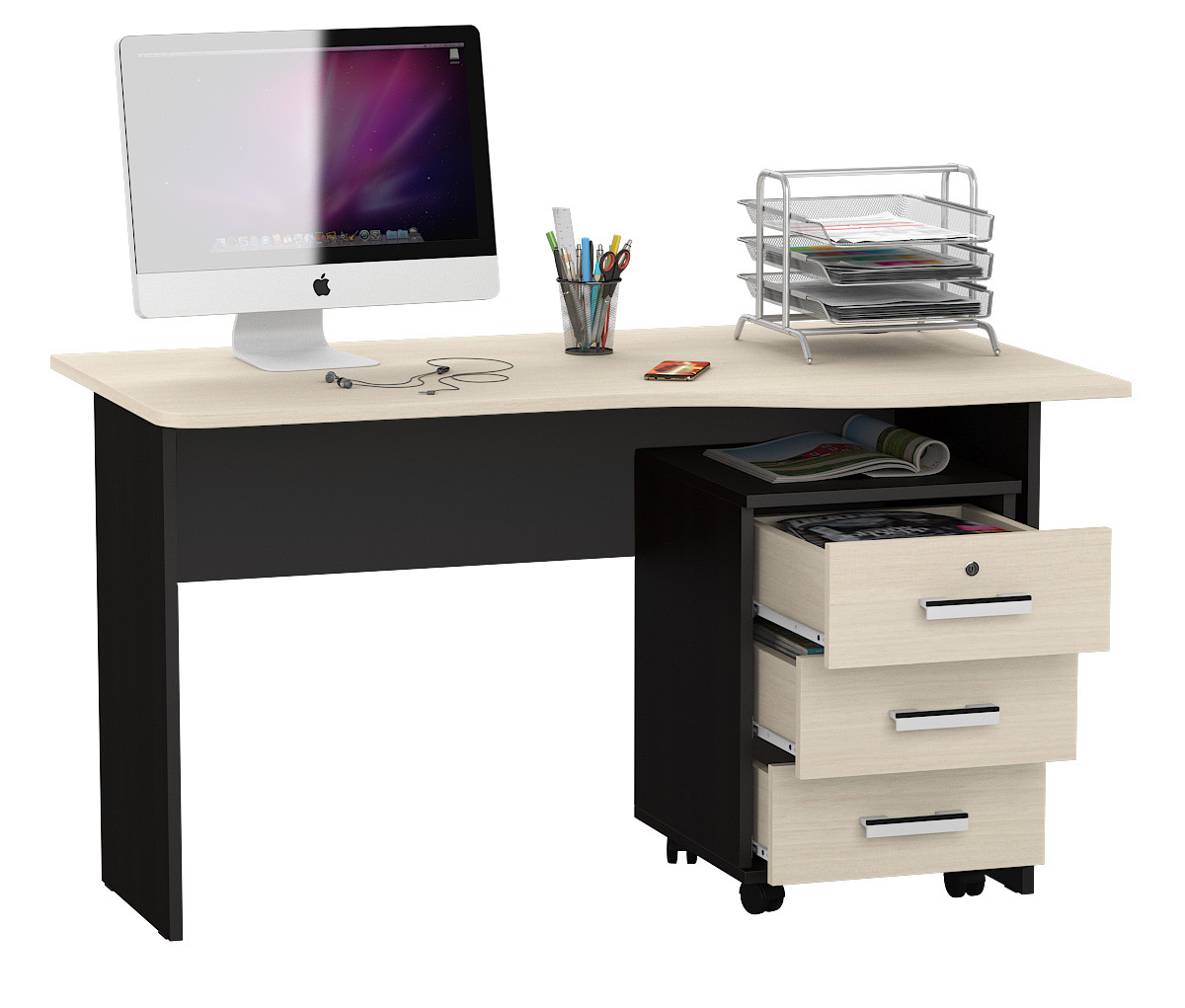 Отзывы о Столплит Стол МД 1.04Т с тумбой на колесиках венге/дуб беленый