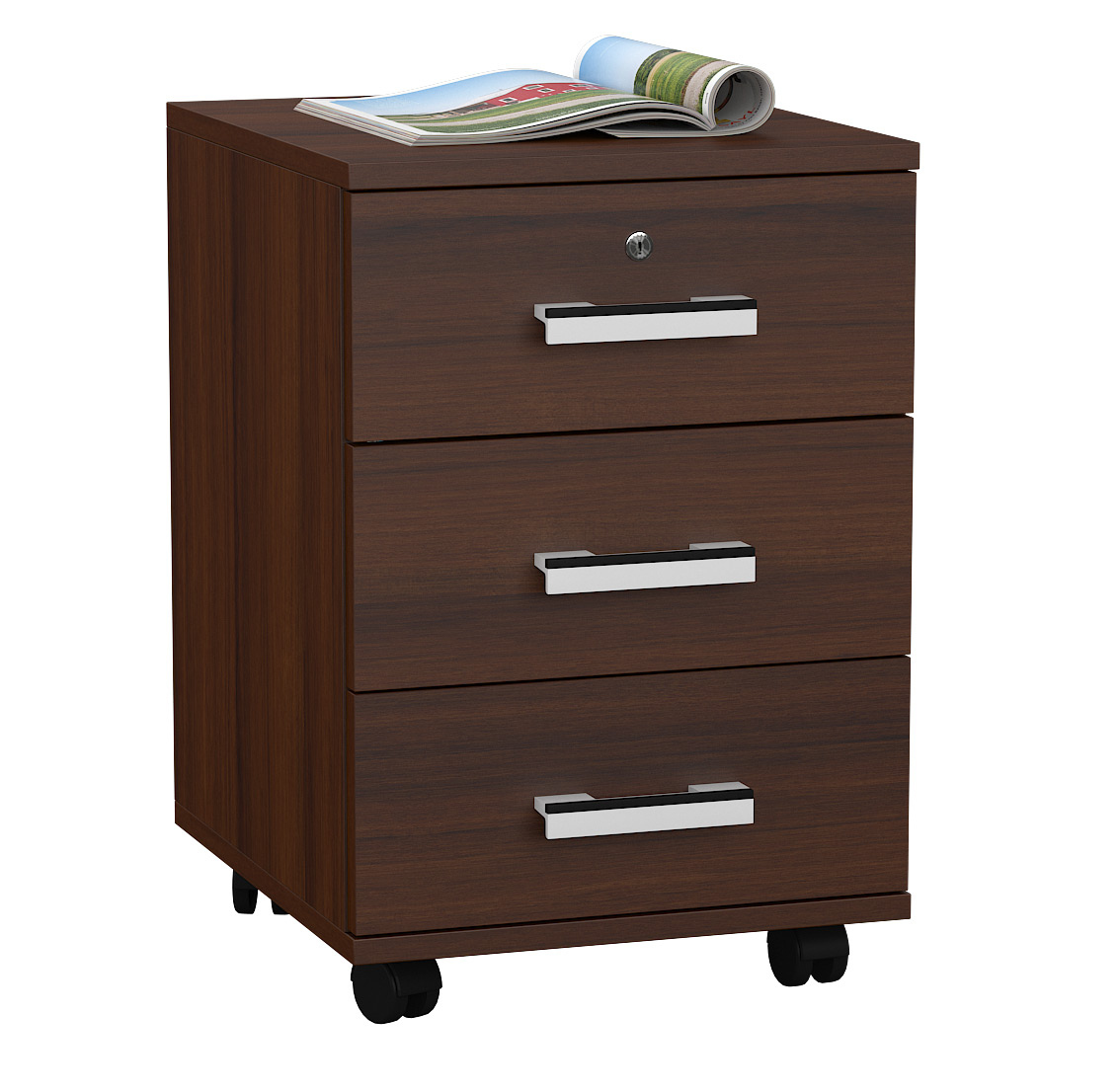 Тумба на колёсиках МД 3.02 - комфорт, практичность и доступная цена! Удобная, мобильная тумба с тремя выдвижными ящиками - идеальное решение проблемы расширения «складских мест» дома и в офисе. По Вашему желанию тумба послужит хранителем деловых бумаг в кабинете, косметики в спальне или «перчаточным» ящичком в прихожей. Компактный тумбы позволит Вам «доукомплектовать» письменный стол, аккуратно разместив её под столешницей. Верхний ящик тумбы закрывается на ключ, что позволит хранить там важные документы или очень «личные» вещи. Тумба установлена на колёсики и быстро перемещается в нужное место, что удобно при коллективном пользовании справочниками или техникой.
