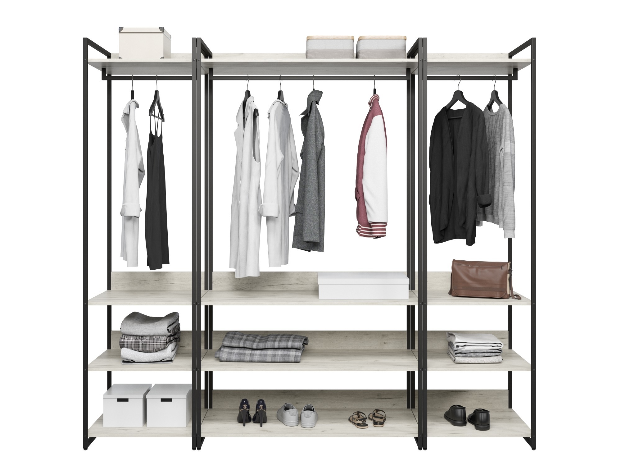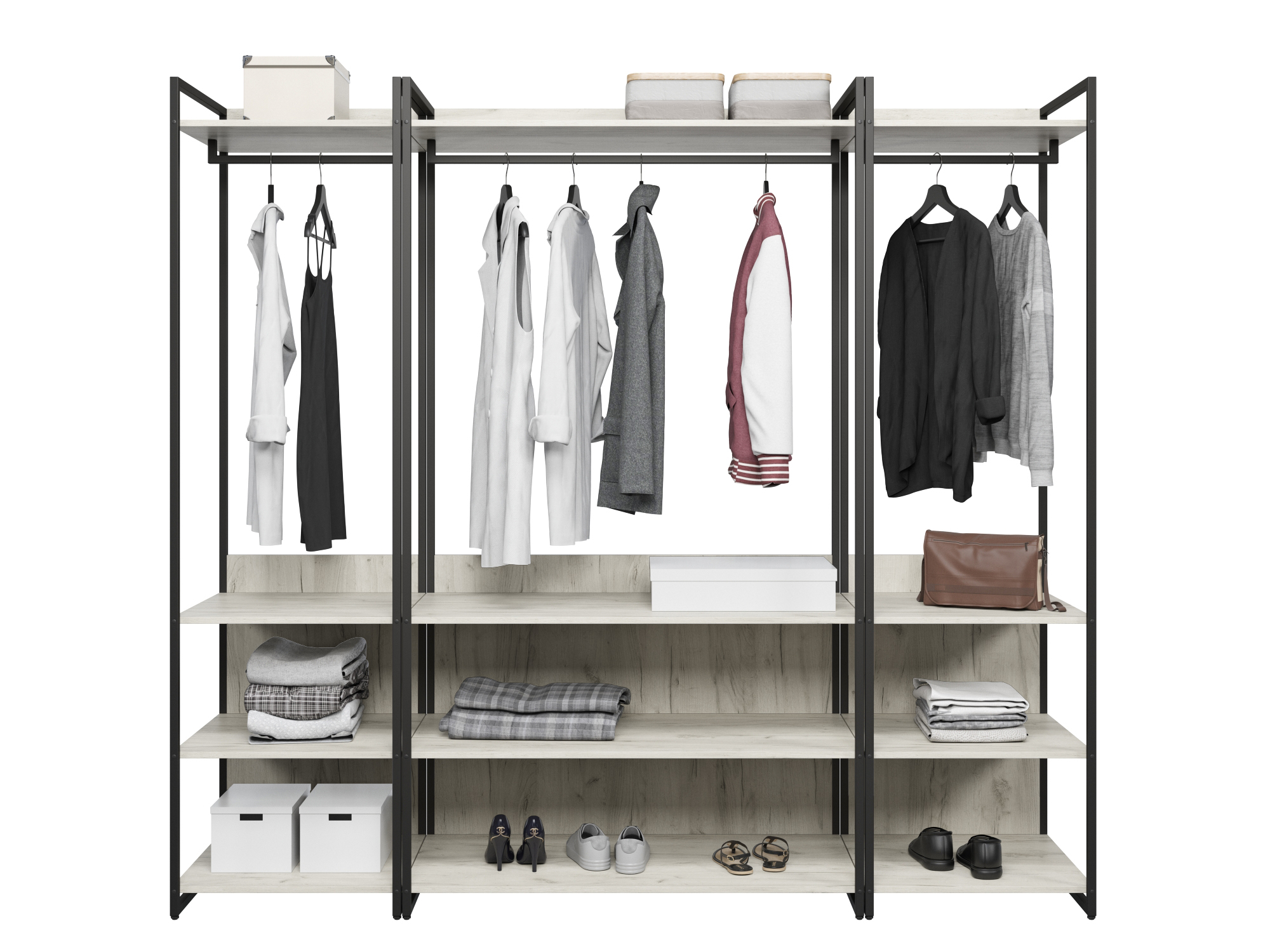 Каркас выполнен из металлического профиля 20х20 мм покрашенного порошковой краской, корпус и фасады из ЛДСП 16 мм, цвет дуб крафт табак. Каждый модуль имеет пластиковые ножки регулируемые по высоте.