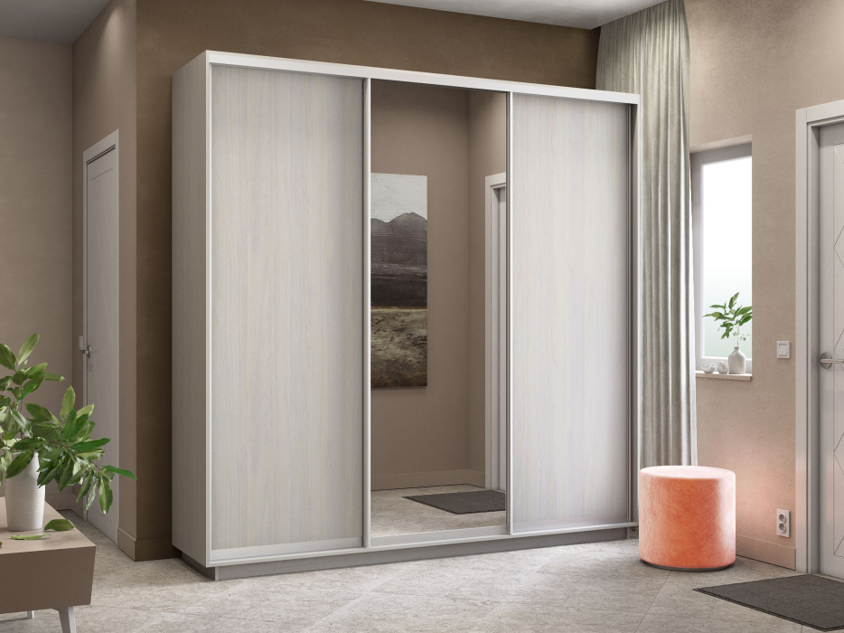 Шкаф-купе Экспресс Медиум (1 зеркало) трио 2400 x 2400 x 450 (Ясень Анкор светлый) Код I0000401547