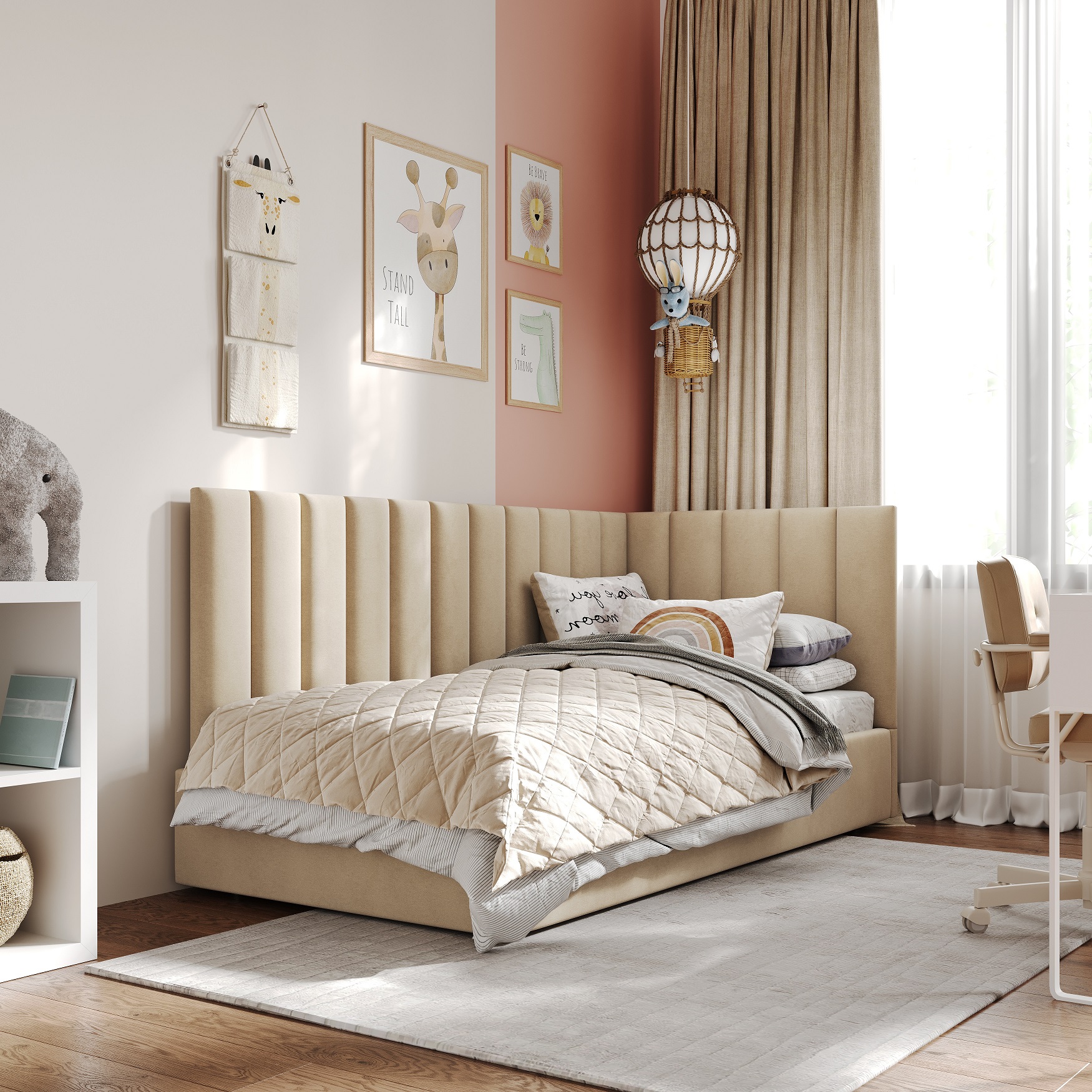 Кровать Меркурий-3 со спальным местом 120*200, велюр, отличается элегантным дизайном. Односпальная кровать оборудована подиумным основанием и прямой спинкой. Интерьерная кровать Меркурий впишется в любой интерьер. Мягкое изголовье придаст комнате дополнительный уют. Большой выбор размеров спального места и вариантов обивки для кровати Меркурий, каждый найдет нужный размер, цвет и ткань для своей кровати. Плюсы Кровати Меркурий: Металлическое кроватное основание с подъемным механизмом и вместительным ящиком для белья в комплекте. У кровати Меркурий не большое по высоте изголовье, это большой плюс для мансардных этажей и небольших комнат . Габариты 135х215см. Высота изголовья 102см. Толщина изголовья 60мм. Высота боковых царг 32см. Углубление под матрас 5-7см.