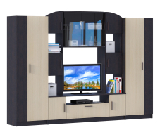 Стенка Макарена уверенно завоевала сердца наших покупателей. Стенка стильная и современная, выполнена в контрастном сочетании цветов корпуса и фасада. Большое количество различных отделений позволит Вам разместить все необходимые вещи и предметы декора. Элементы гарнитура гармонично объединяются и дополняют друг друга для создания более функциональной и комфортной комнаты. Идеальный вариант для обстановки небольшой гостиной. В комплект входит: витрина СБ-2615-01 с распашными дверцами, с открытыми и закрытыми полками, тумба ТВ СБ-2615-02 с распашными дверцами, шкаф 2х дверный СБ-2615-03 с антресолью и поперечной штангой, шкаф 2х дверный СБ-2615-04 с 4 мя полками.