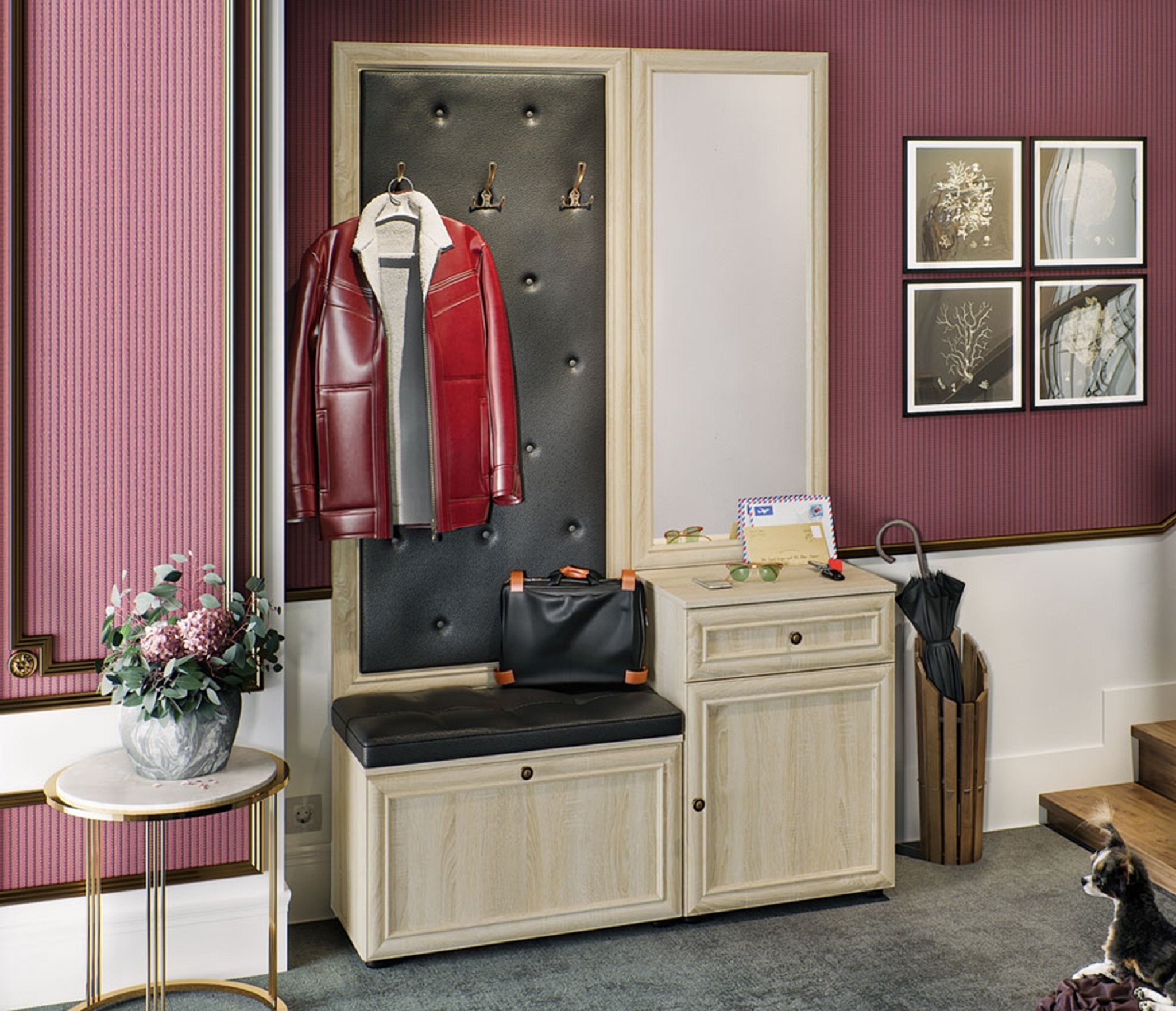 Модульная прихожая Оскар-7 — выполнена в традиционном английском стиле. Модули данной серии мебели изготовлены из ЛДСП / МДФ Дуб Сонома светлый, фасады украшены вставками из черно-коричневой экокожи Kordeliya. Фурнитура выполнена в цвете Состаренная бронза. Благодаря наличию различных модулей можно подобрать набор мебели, максимально подходящий размерам вашей прихожей и соответствующий вашим вкусам. Набор мебели украсит вашу квартиру, позволит разместить все необходимые вещи: одежду, обувь и аксессуары.