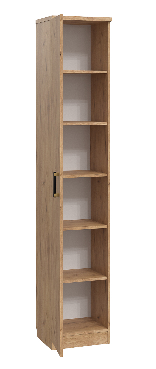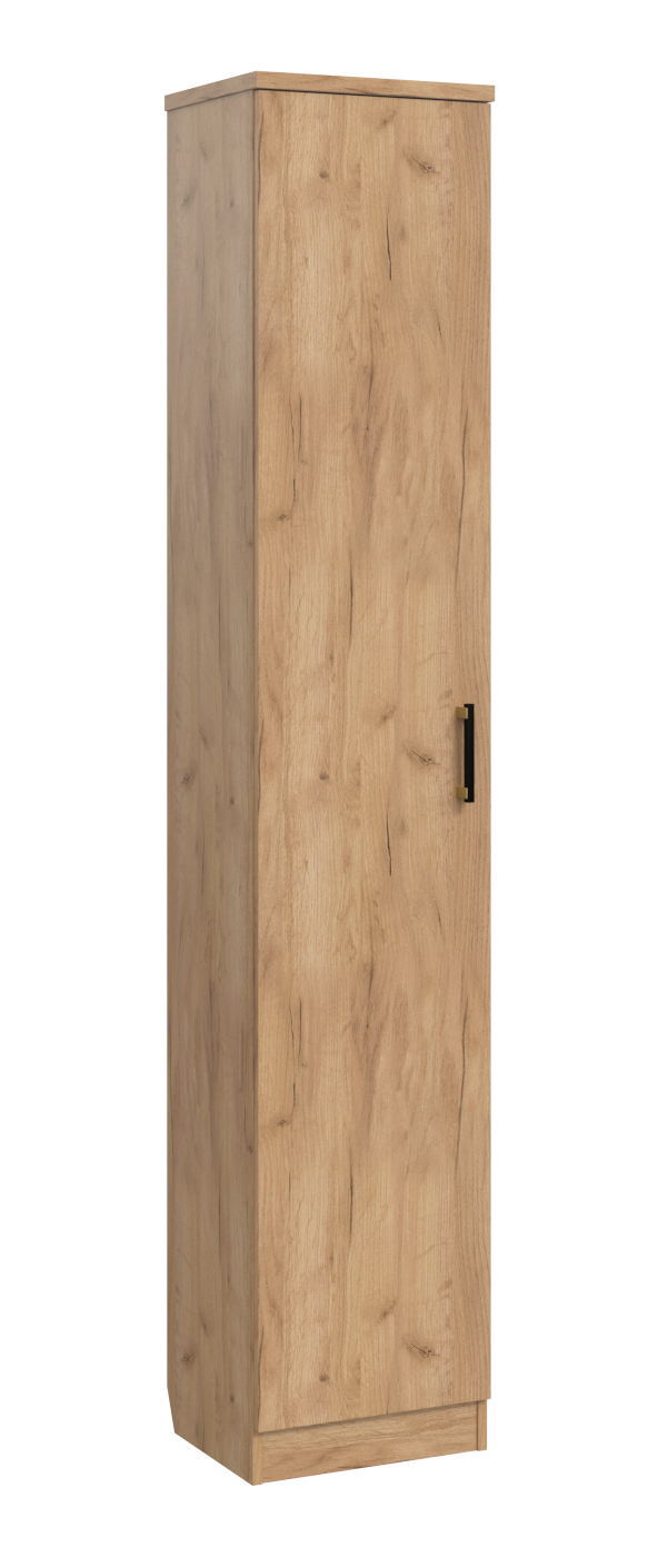 Линейка мебели "Виктория" - выгодное решение для отелей и гостиниц, сбалансированное по цене, качеству и функциональности. В производстве используется ЛДСП, толщины 25/16 мм. Фасады обработаны ударопрочной кромкой ПВХ толщиной 2/0,6 мм. В коллекции используется современная, качественная фурнитура. Базовая комплектация представлена в декоре Дуб крафт золотой и Северное дерево светлое. Когда все вещи лежат на своих местах – это залог красивого и аккуратного интерьера. Шкаф-пенал Виктория ВИ-7 оснащен пятью полками для удобного расположения вещей и постельного белья. Модуль может быть собран в зеркальном варианте «правым» или «левым».