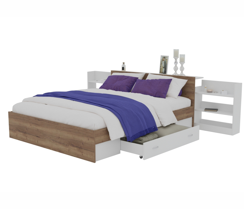 Кровать Доминика с блоком и ящиками 160 (Дуб золотой/Белый) Код I0000281256