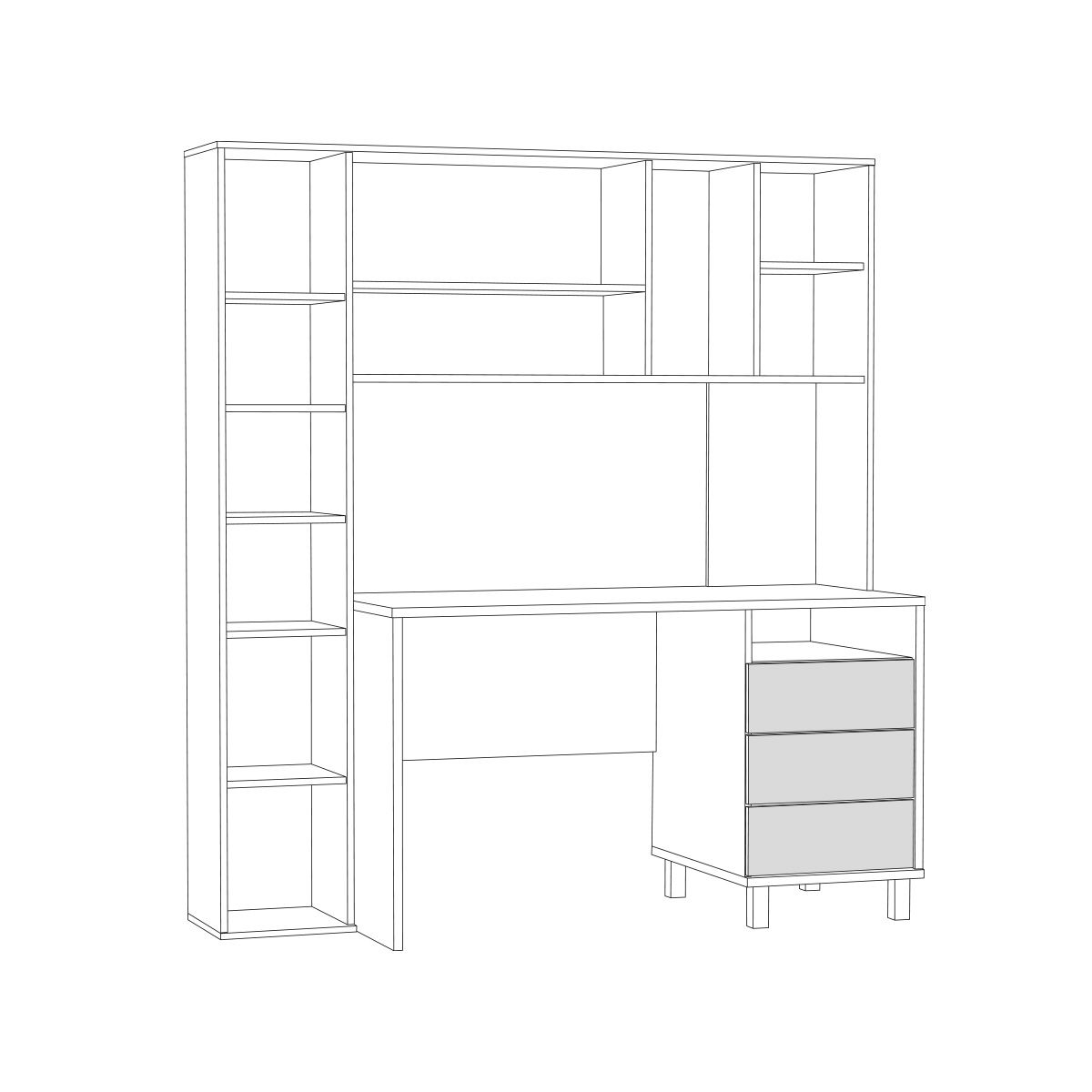 Изделие оснащено надстройкой, пеналом с полками и закрытыми отделением под системный блок.