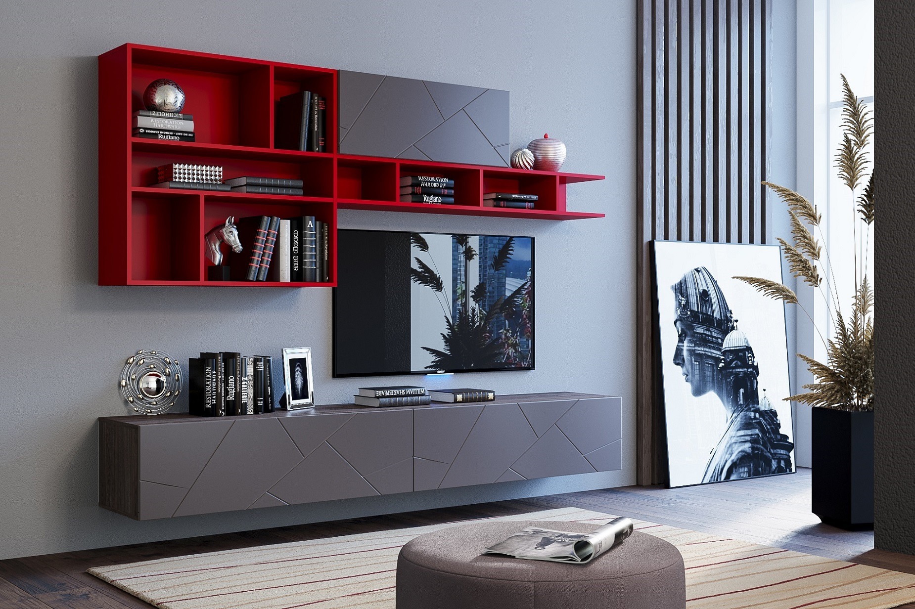 Размер ниши под ТВ: 1300/1100мм.