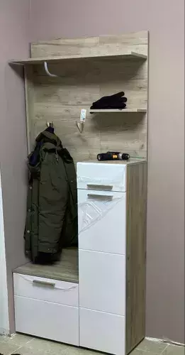 Прихожая понравилась, такая какую искала. Не большого размера, но очень вместительная, хорошо подойдёт для маленького коридора. Доставка пришла во время, упаковка целая. Собрали быстро, зеркало клеится на двух сторонний скотч, пока не приклеили. Ценам приемлемая.