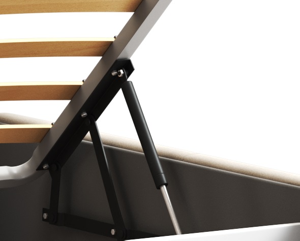Кровать оснащена подъемным механизмом на газ/лифтах и вместительным бельевым ящиком, что обеспечивает дополнительное пространство для хранения постельного белья и других вещей.